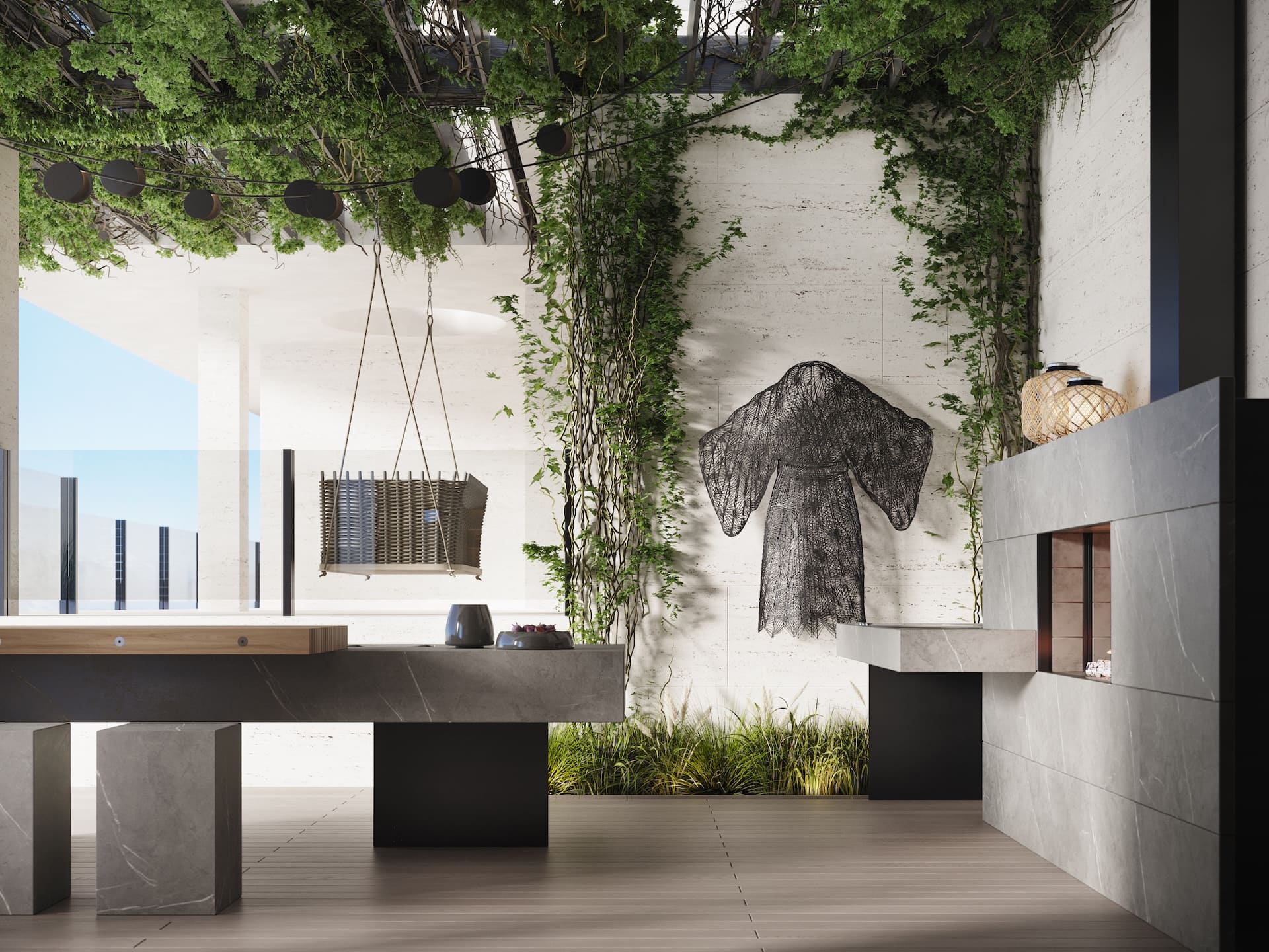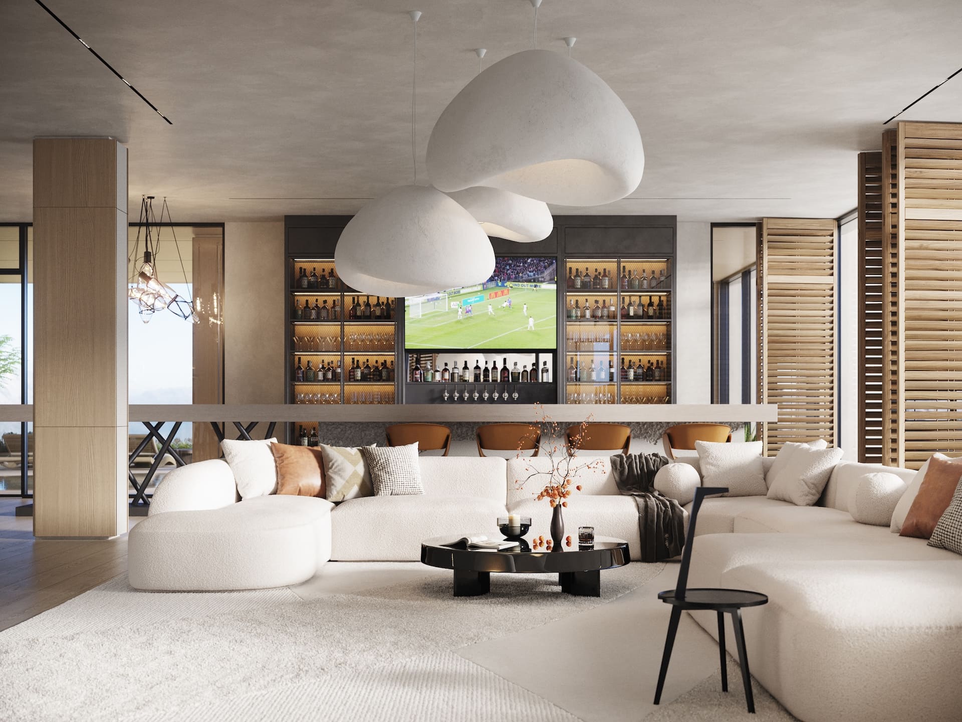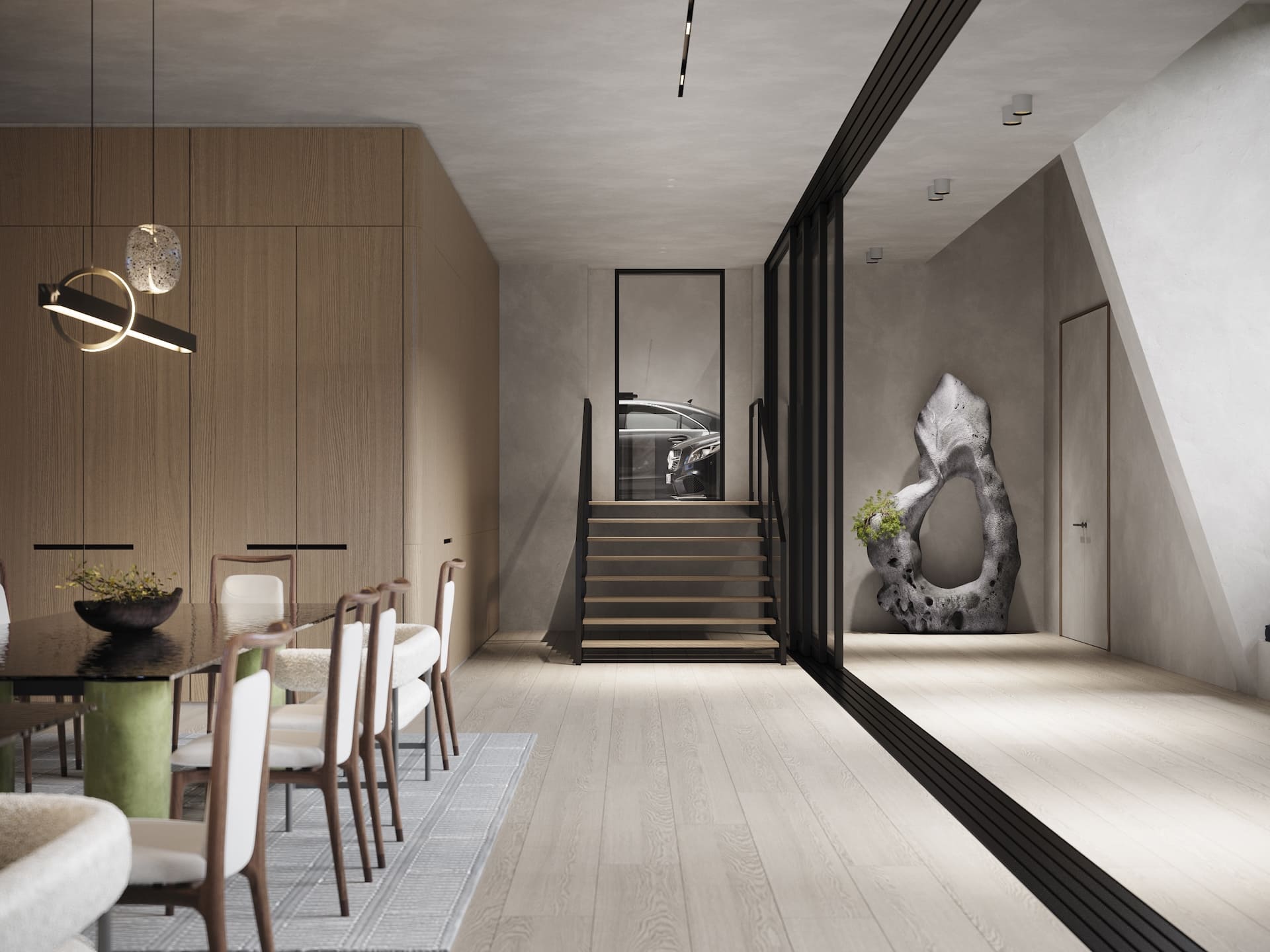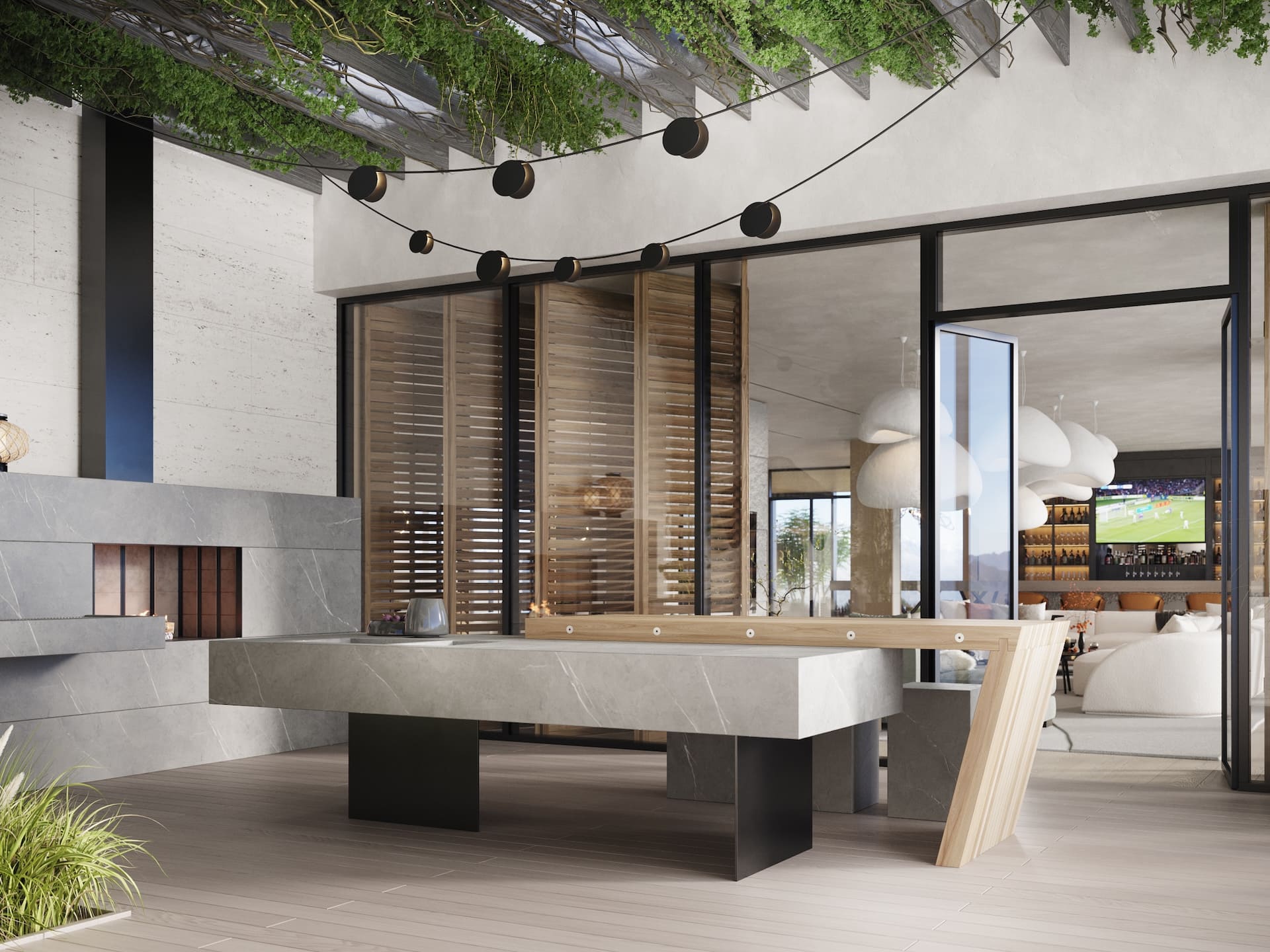 Ещё один совместный проект с нашим португальским партнёром стал продолжением серии интерьеров под ключ, реализованных через фабрики Италии и Португалии. На этот раз задача была амбициозной — создать не просто жилое пространство, а уникальный экологичный комплекс с акцентом на натуральные материалы, функциональность и эксклюзивный дизайн. Заказчик хотел чего-то необычного: чтобы природная эстетика сочеталась с высоким уровнем роскоши, а для отделки использовались редкие породы дерева, камня и другие премиальные материалы. Мы взяли на себя весь цикл — от концепции до финальной сдачи. Отдельностоящая мебель была реализована на ведущих производствах Португалии и Италии, встроенная — полностью на португальской фабрике, что позволило точно передать авторские формы. Несмотря на сложность технических решений и длительное согласование кастомных предметов, проект был реализован в срок — с максимальным соответствием первоначальной идее.