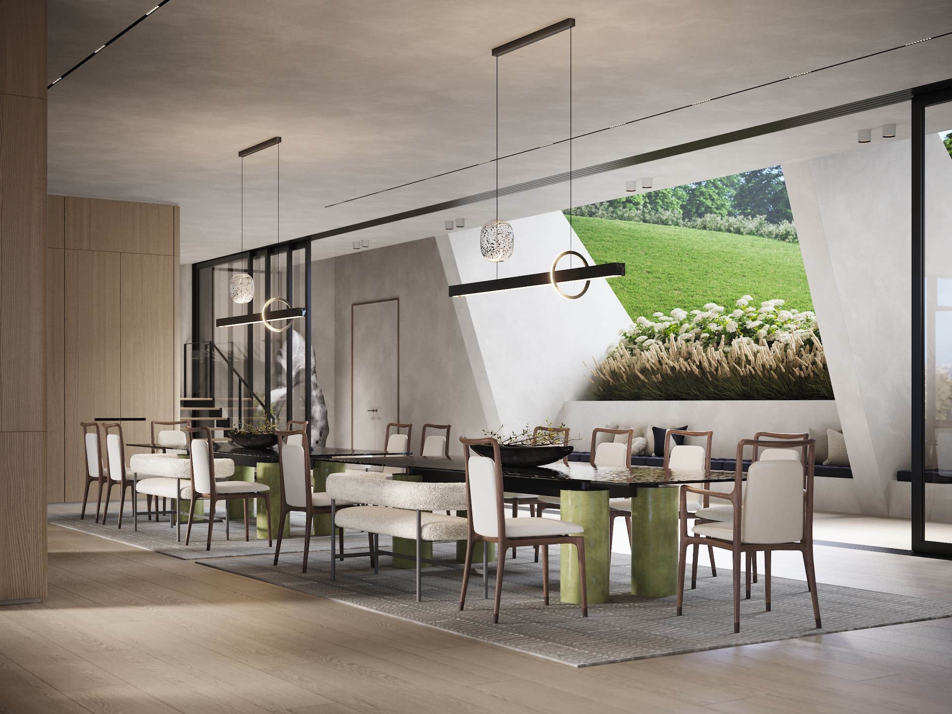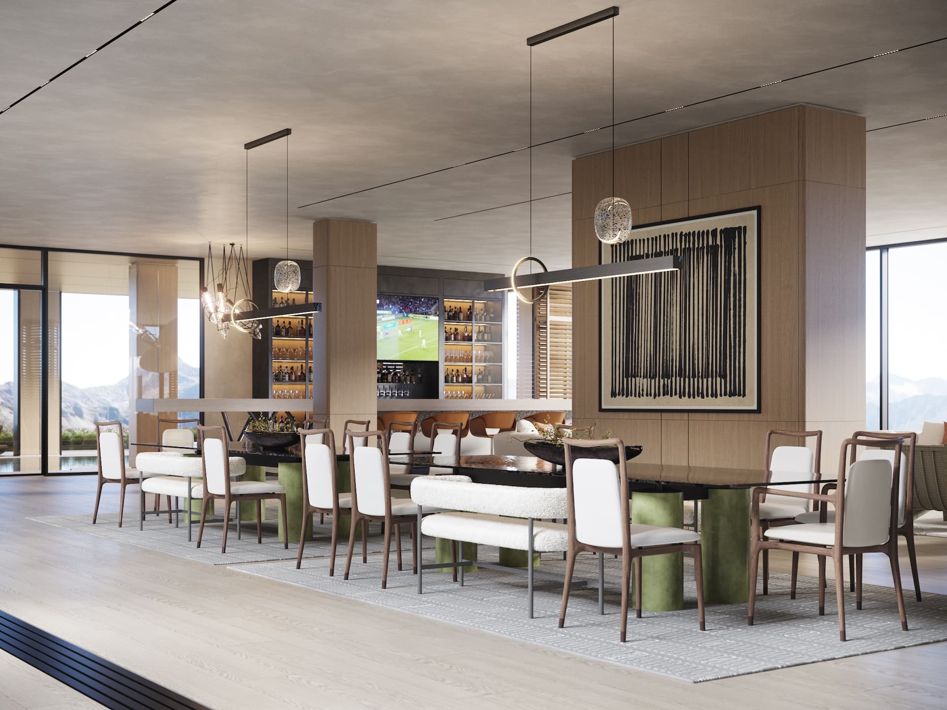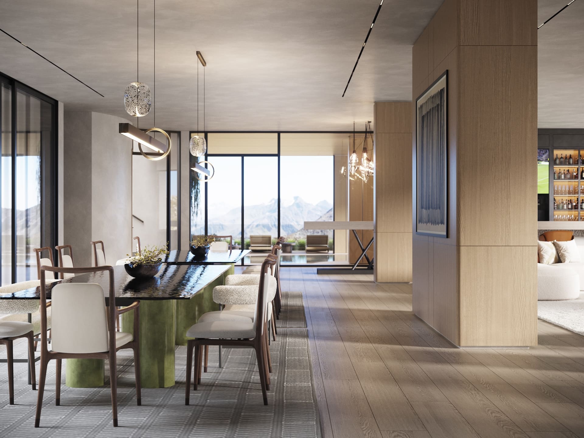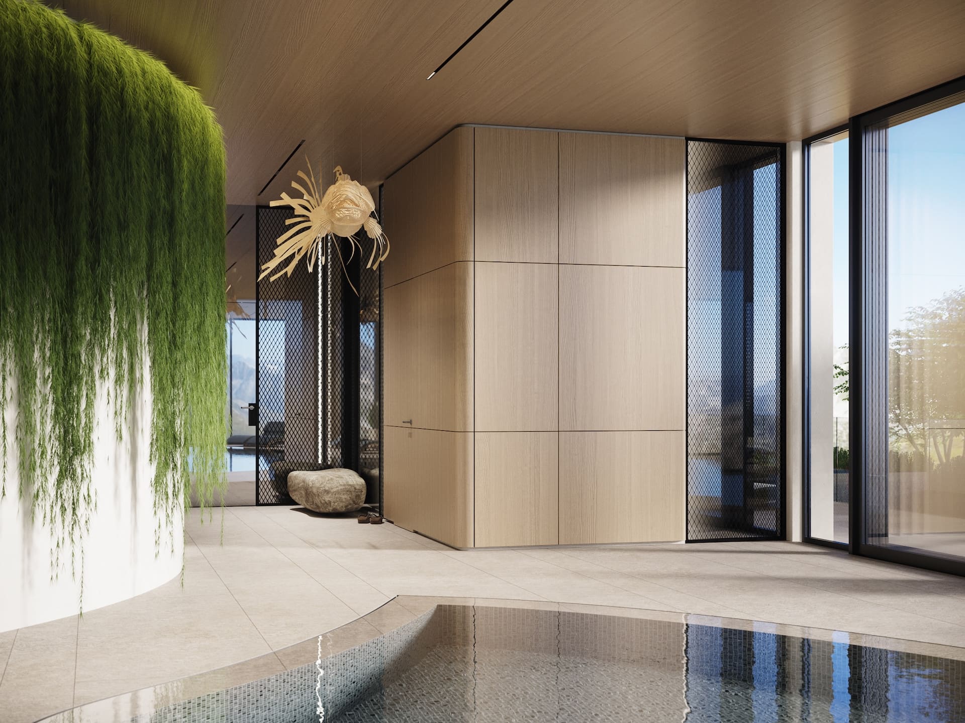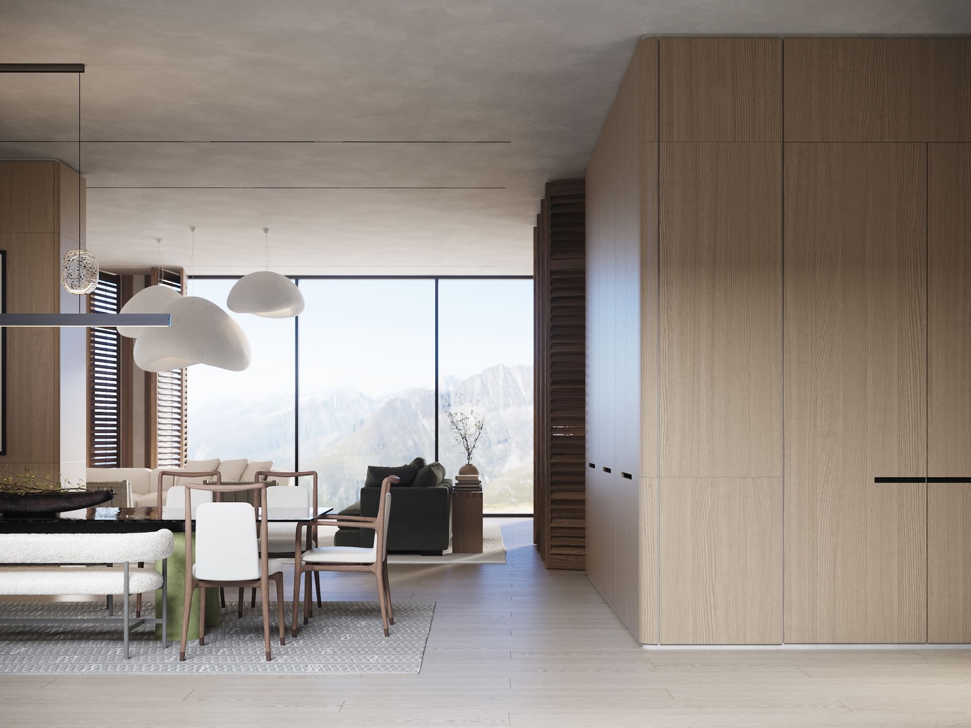 Ещё один совместный проект с нашим португальским партнёром стал продолжением серии интерьеров под ключ, реализованных через фабрики Италии и Португалии. На этот раз задача была амбициозной — создать не просто жилое пространство, а уникальный экологичный комплекс с акцентом на натуральные материалы, функциональность и эксклюзивный дизайн. Заказчик хотел чего-то необычного: чтобы природная эстетика сочеталась с высоким уровнем роскоши, а для отделки использовались редкие породы дерева, камня и другие премиальные материалы. Мы взяли на себя весь цикл — от концепции до финальной сдачи. Отдельностоящая мебель была реализована на ведущих производствах Португалии и Италии, встроенная — полностью на португальской фабрике, что позволило точно передать авторские формы. Несмотря на сложность технических решений и длительное согласование кастомных предметов, проект был реализован в срок — с максимальным соответствием первоначальной идее.