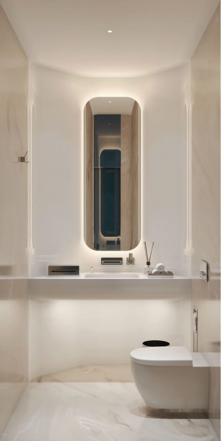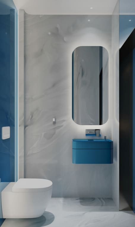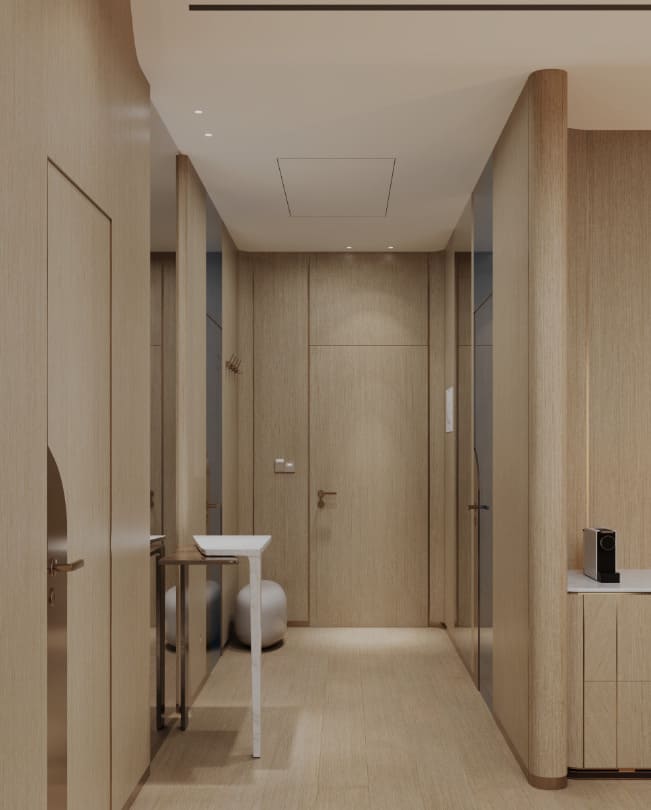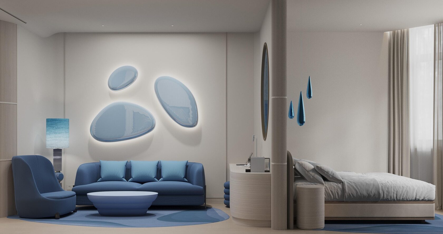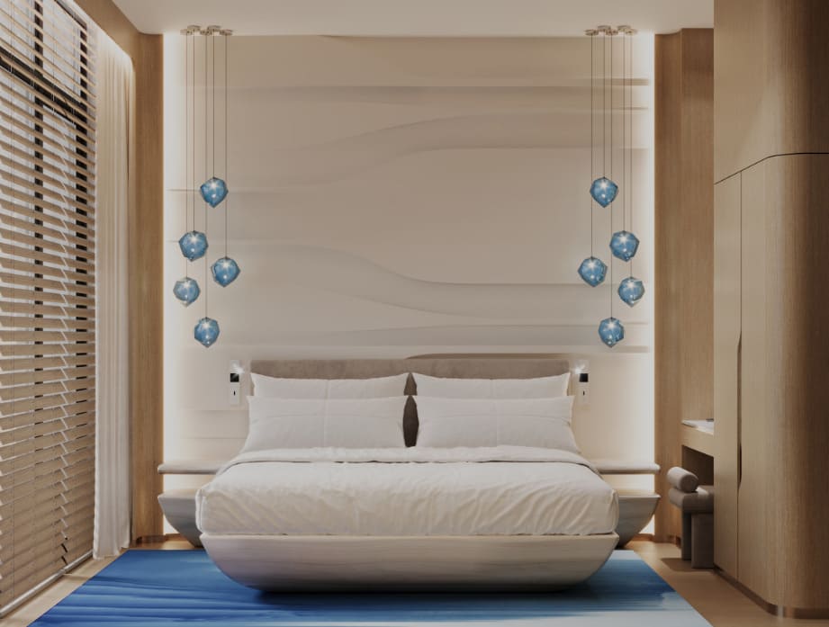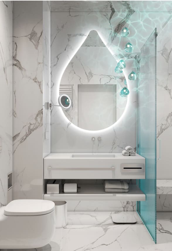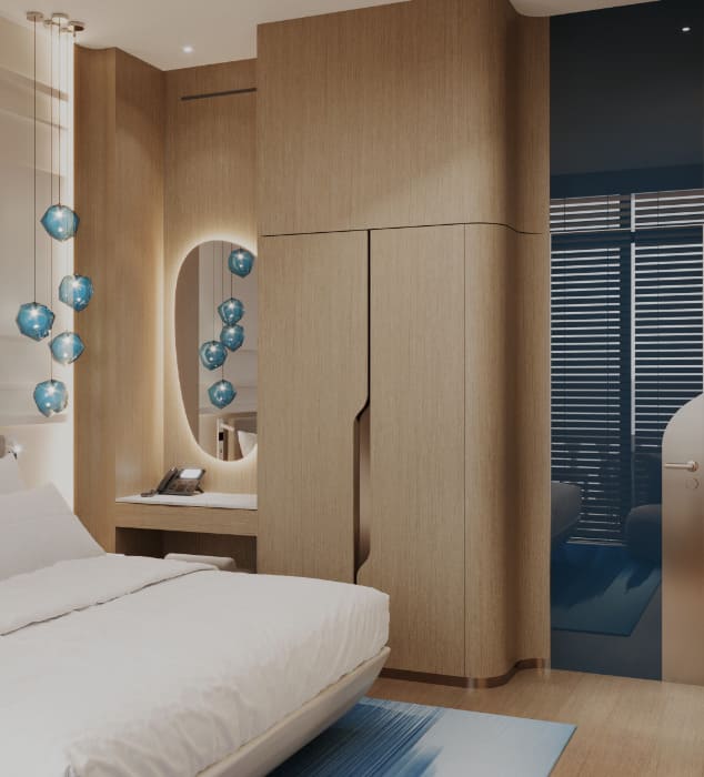 Перед нами стояла сложная задача: уложиться в два месяца, согласовать множество отделок и минимизировать риски при работе с большим количеством поставщиков. Вместо изначального подхода с 12 фабриками мы предложили концентрацию на трёх ключевых производствах — один итальянский партнёр взял на себя свет и кастомные ванны с идентичной отделкой, другой — мебель была реализована на надёжном португальском производстве. Благодаря личному визиту на фабрику и глубокой проработке деталей, нам удалось точно завязать фактуры света, мебели и сантехники в единую систему. Такой подход не только упростил логистику и контроль сроков, но и позволил снизить общий бюджет на 25%.