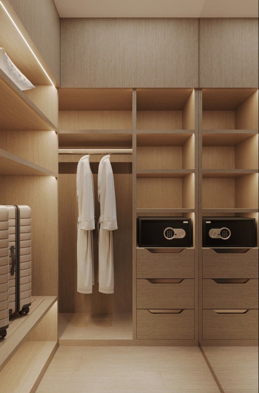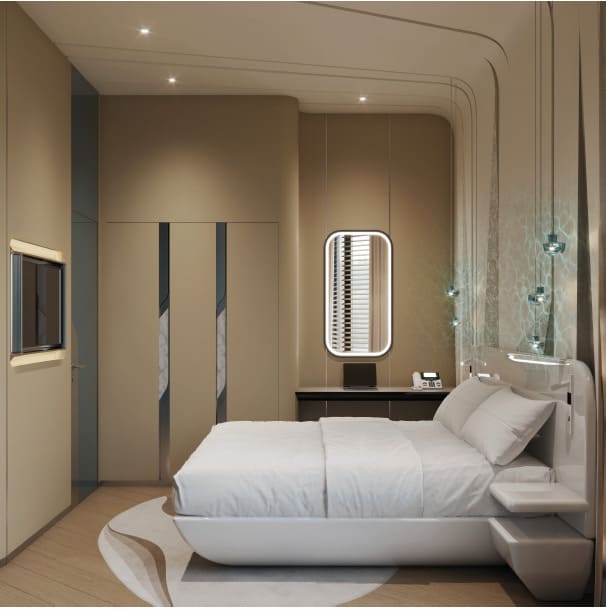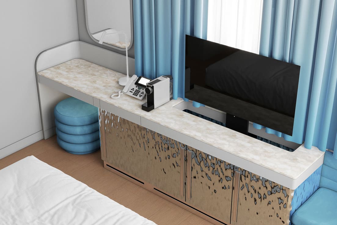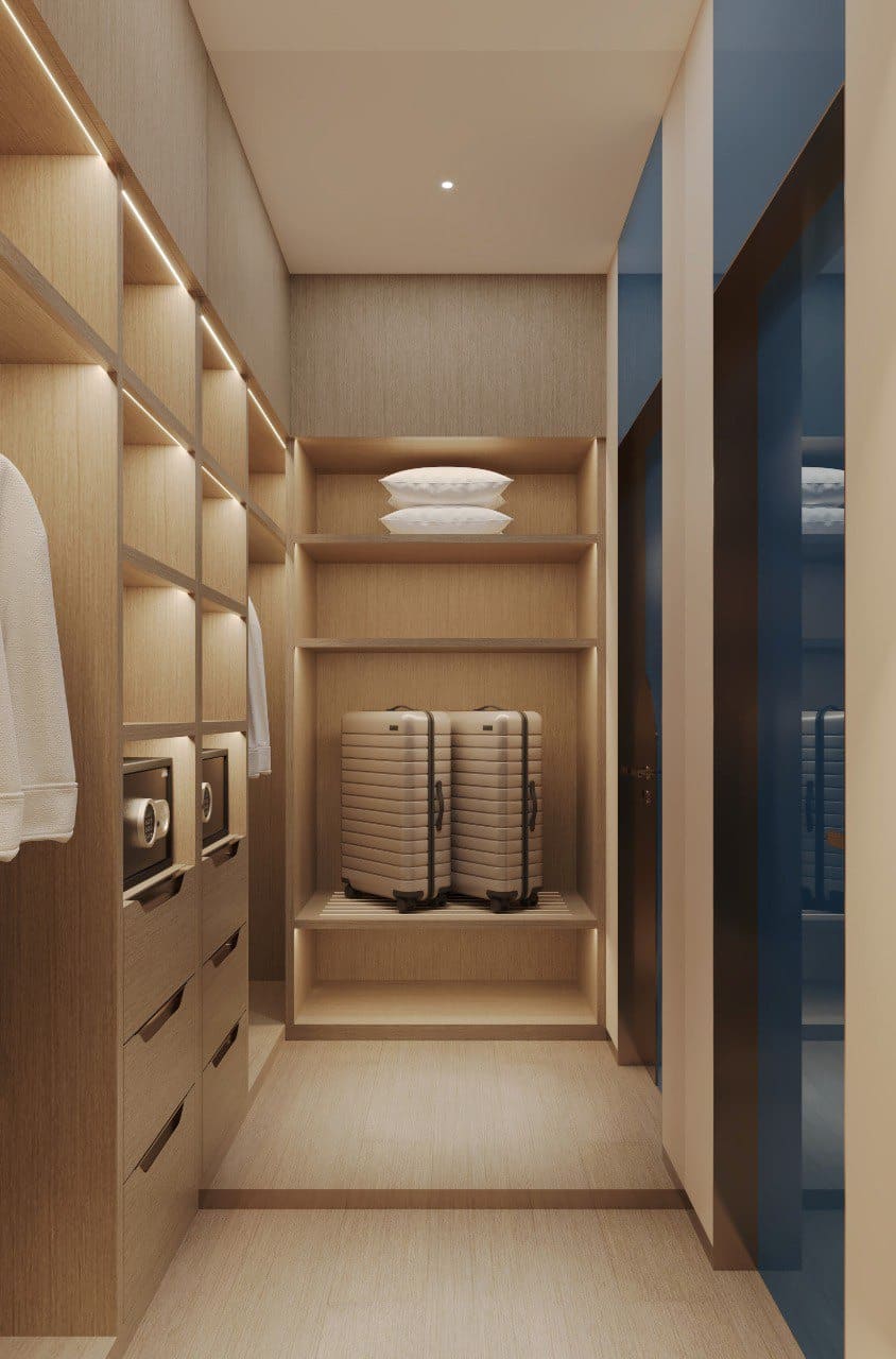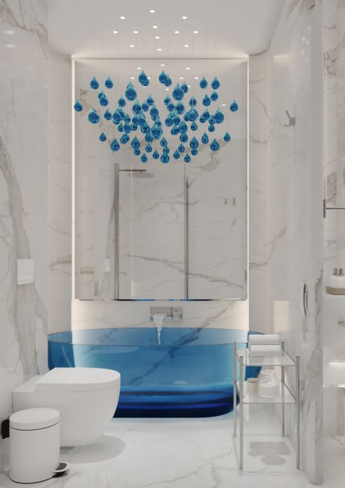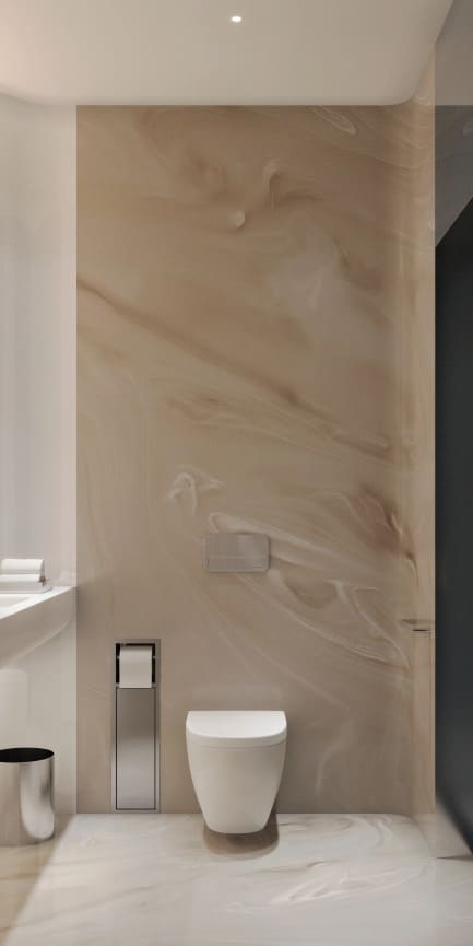 Перед нами стояла сложная задача: уложиться в два месяца, согласовать множество отделок и минимизировать риски при работе с большим количеством поставщиков. Вместо изначального подхода с 12 фабриками мы предложили концентрацию на трёх ключевых производствах — один итальянский партнёр взял на себя свет и кастомные ванны с идентичной отделкой, другой — мебель была реализована на надёжном португальском производстве. Благодаря личному визиту на фабрику и глубокой проработке деталей, нам удалось точно завязать фактуры света, мебели и сантехники в единую систему. Такой подход не только упростил логистику и контроль сроков, но и позволил снизить общий бюджет на 25%.