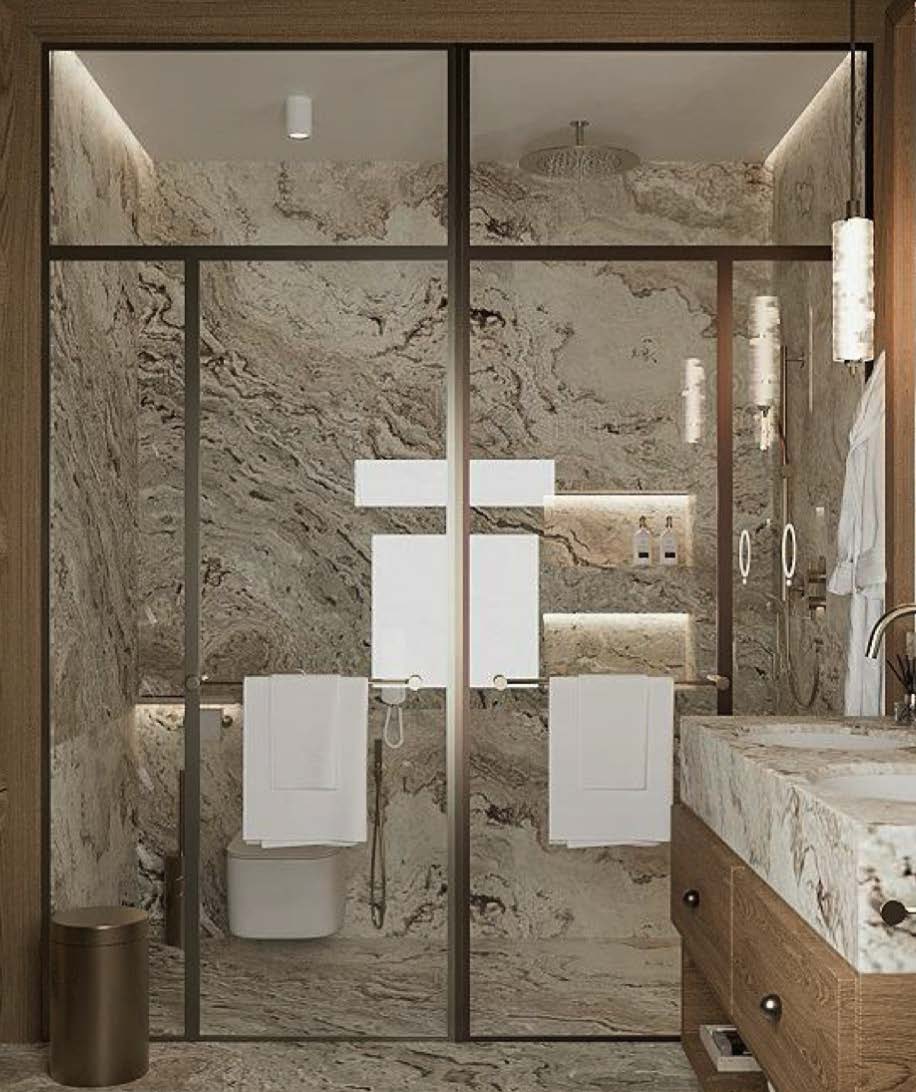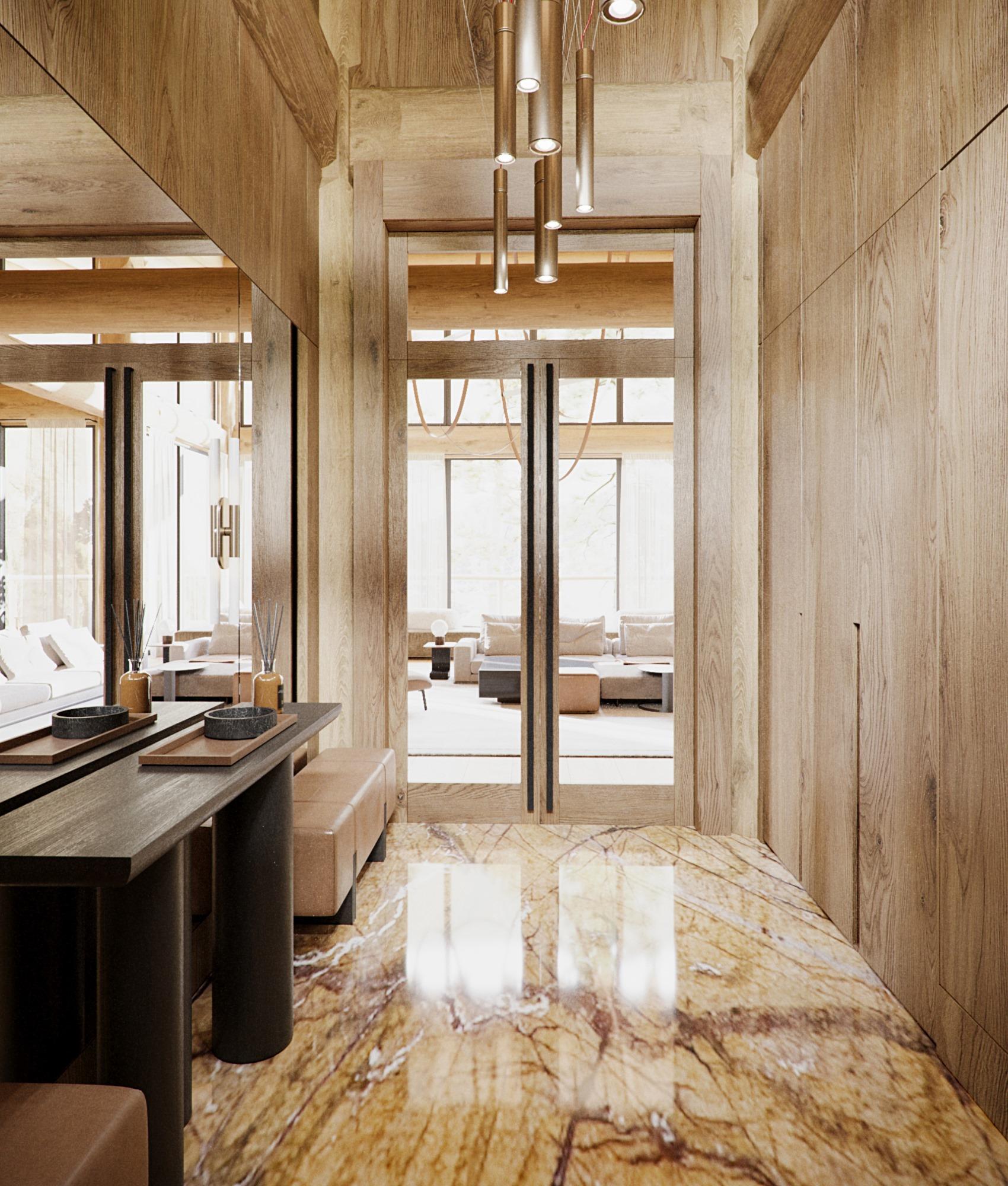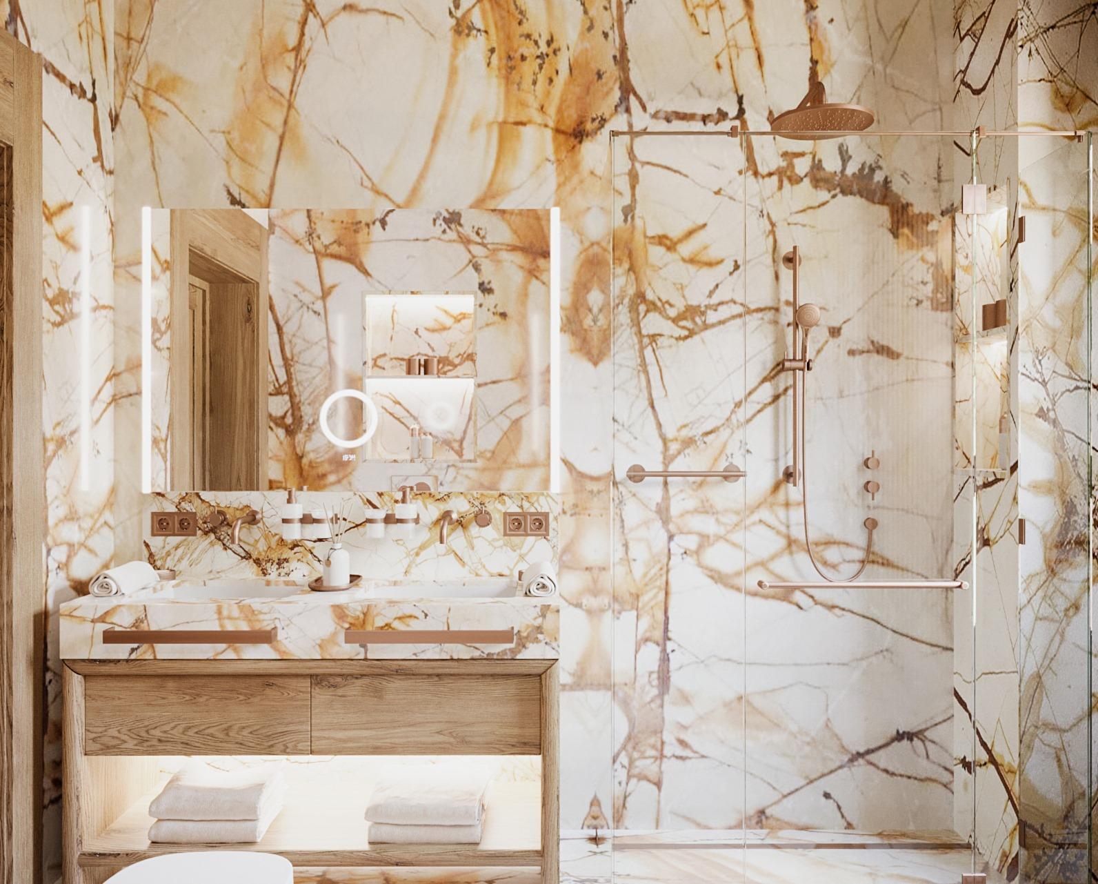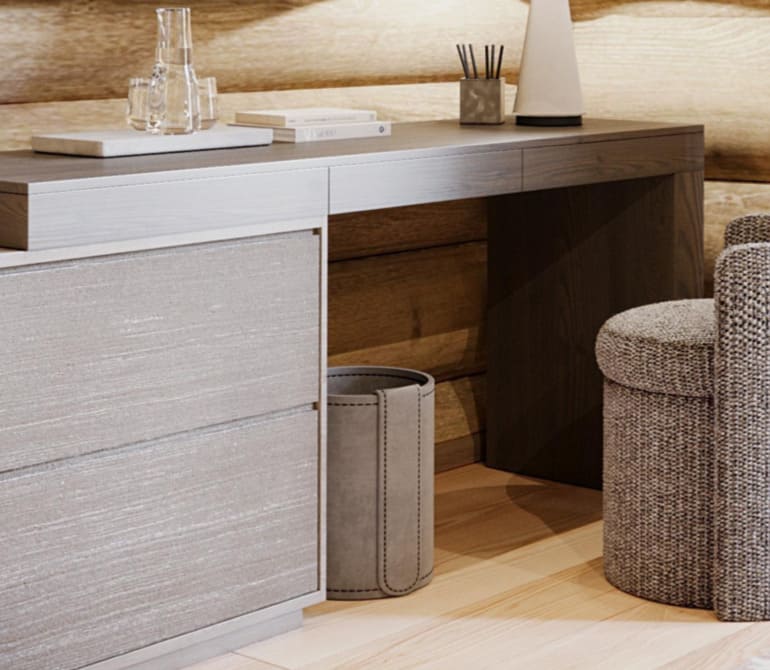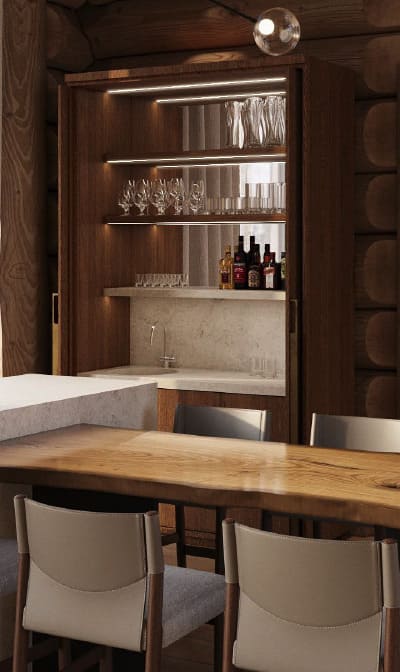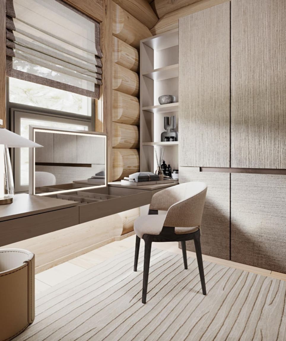 Так как 70% отдельной мебели было привязано к премиальным итальянским брендам, мы предложили реализовать мебель на наших производствах в Италии и Португалии — чтобы сохранить единую стилистику. Решающим стал наш предыдущий проект с португальской фабрикой: заказчика впечатлили качество и точность исполнения. Мы взяли на себя мебель для семейных и императорских вилл, бань — отделка от чертежей и монтажа до поставки ковров и координации с другими подрядчиками.