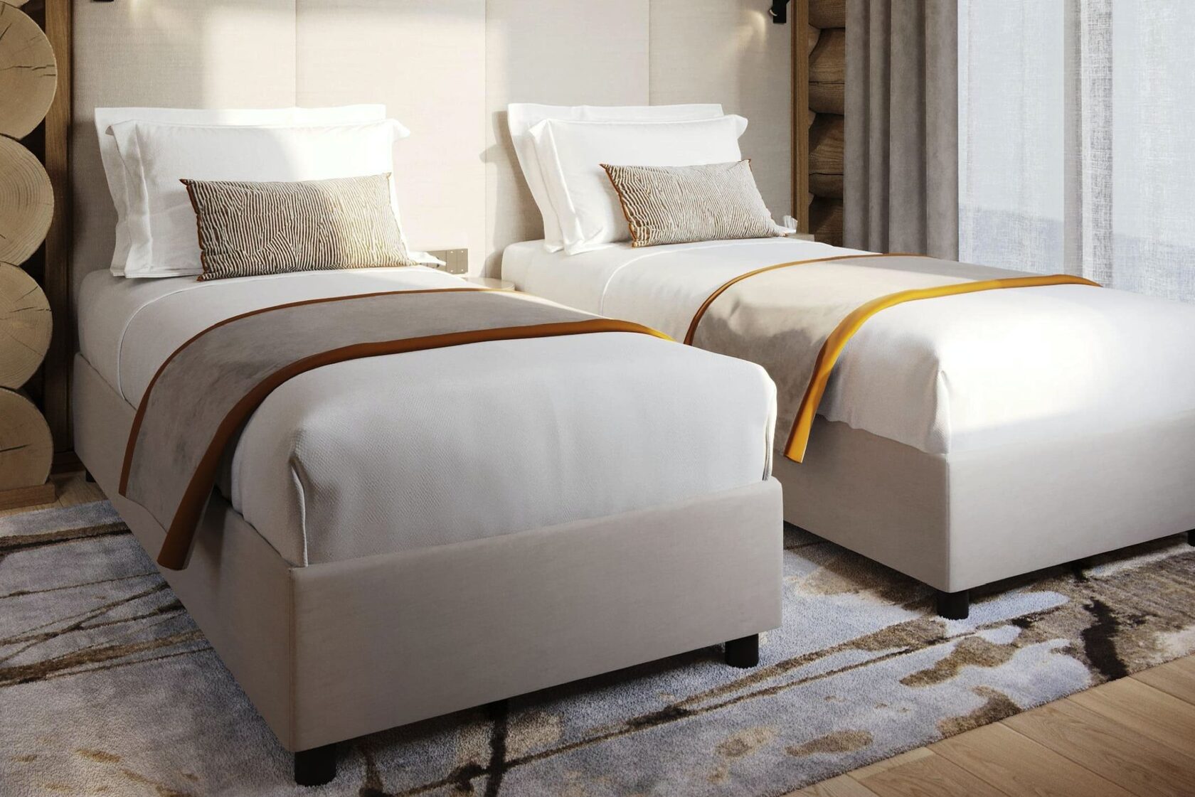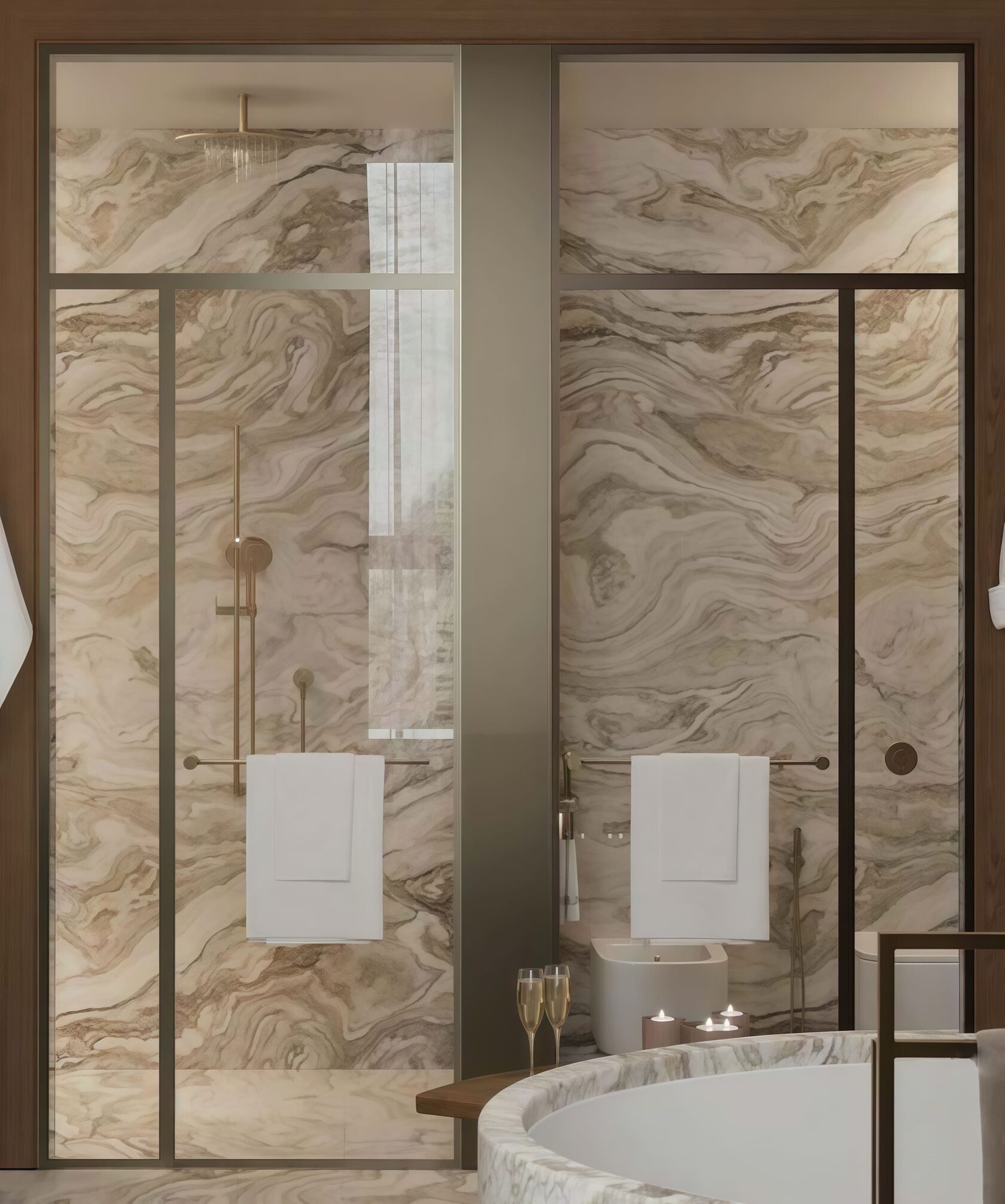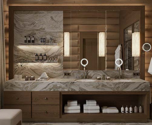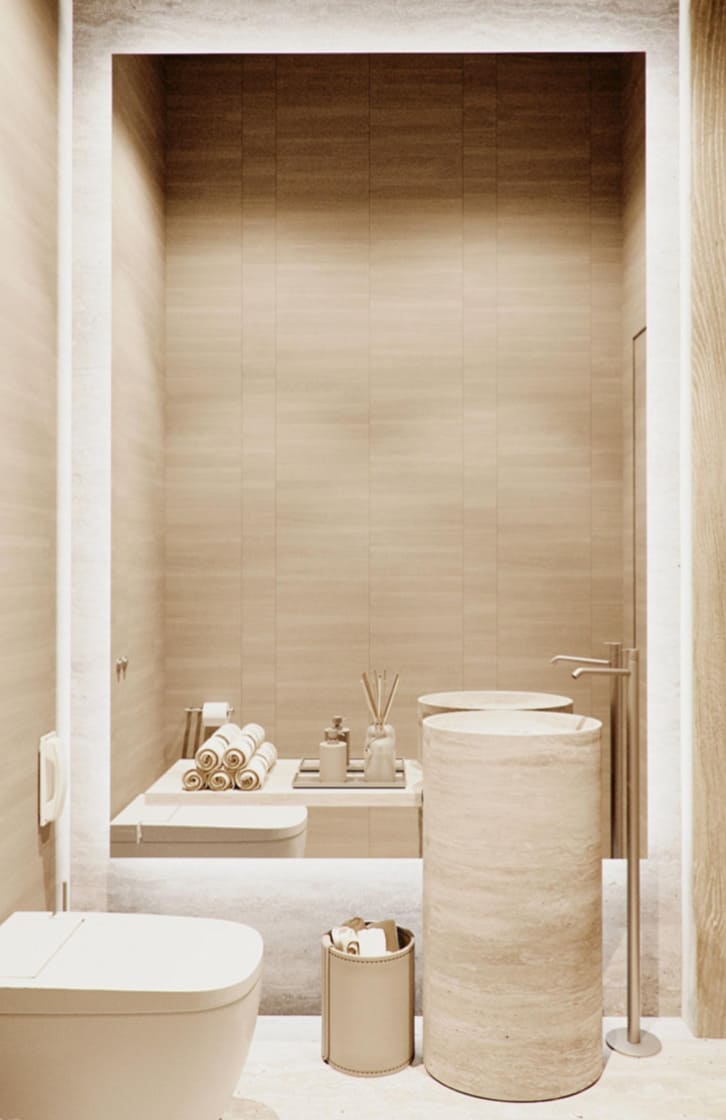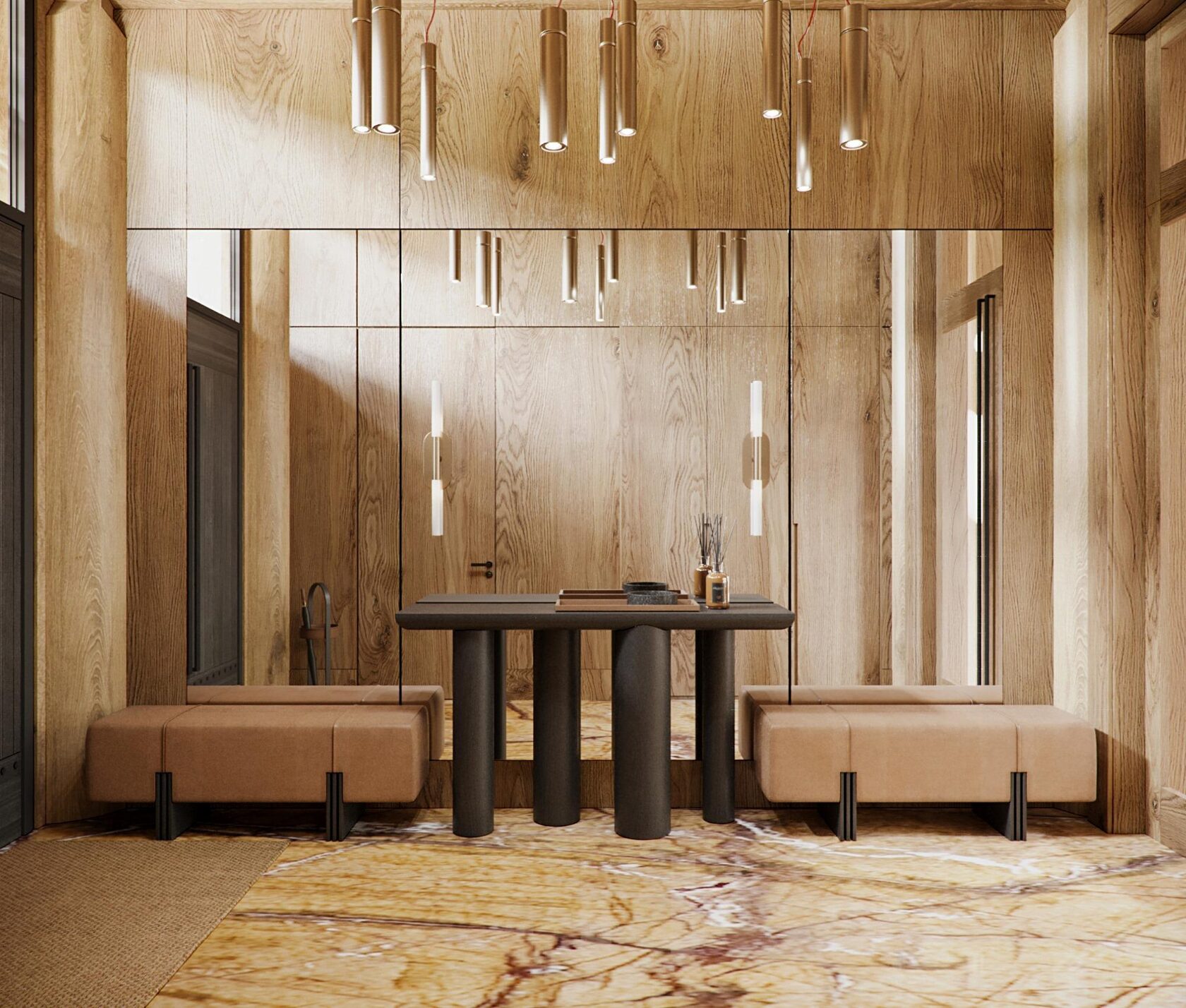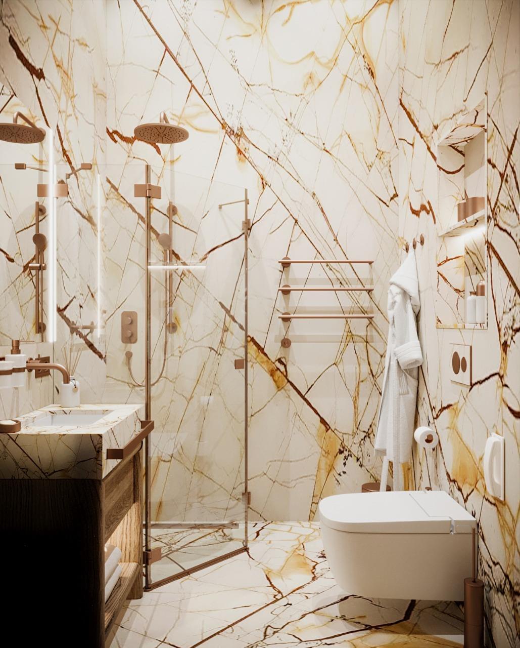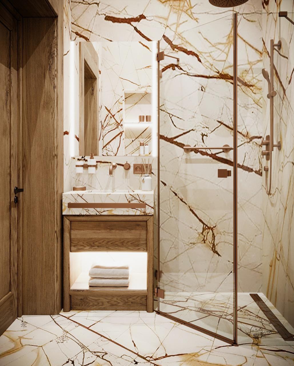 Так как 70% отдельной мебели было привязано к премиальным итальянским брендам, мы предложили реализовать мебель на наших производствах в Италии и Португалии — чтобы сохранить единую стилистику. Решающим стал наш предыдущий проект с португальской фабрикой: заказчика впечатлили качество и точность исполнения. Мы взяли на себя мебель для семейных и императорских вилл, бань — отделка от чертежей и монтажа до поставки ковров и координации с другими подрядчиками.