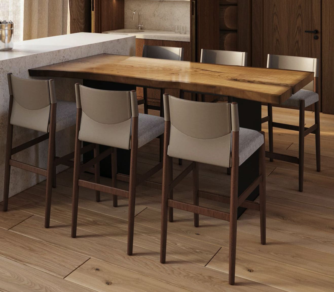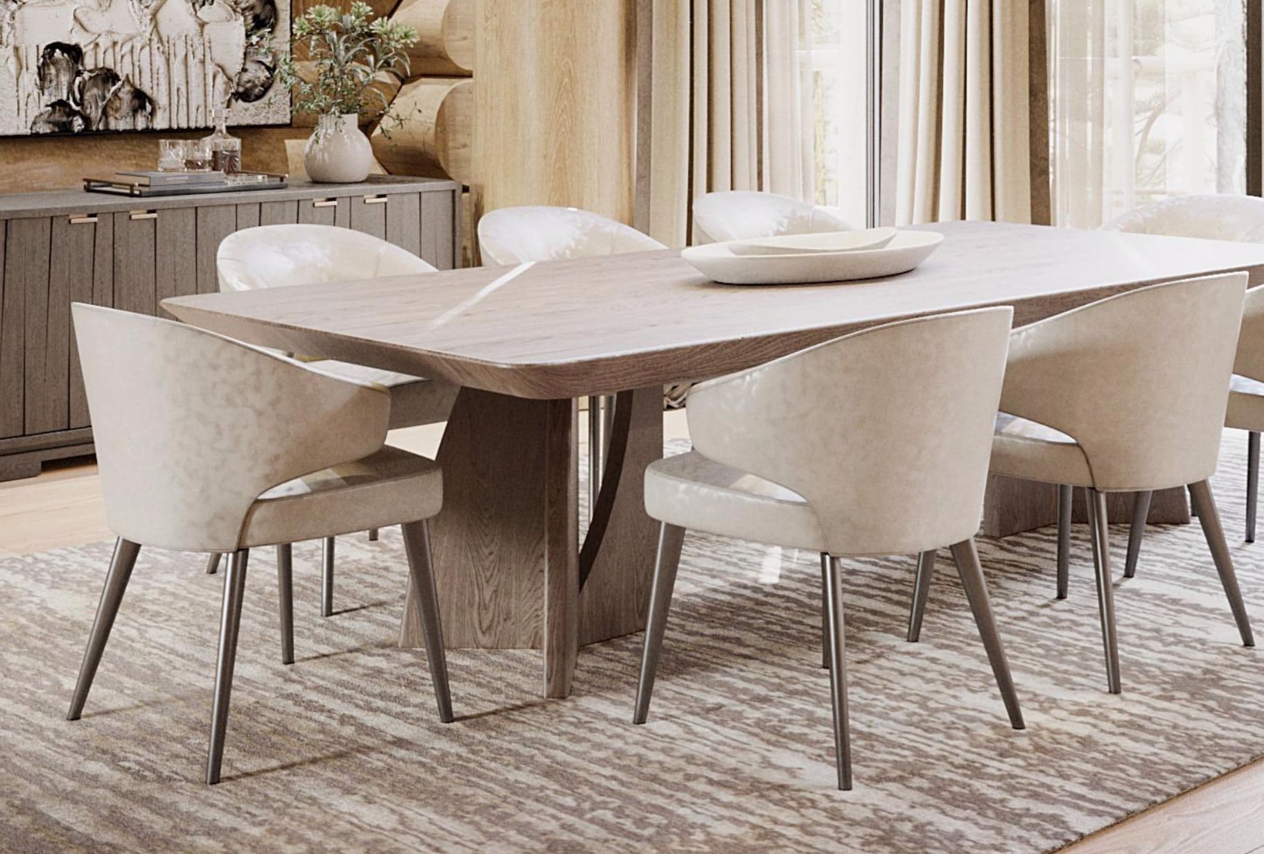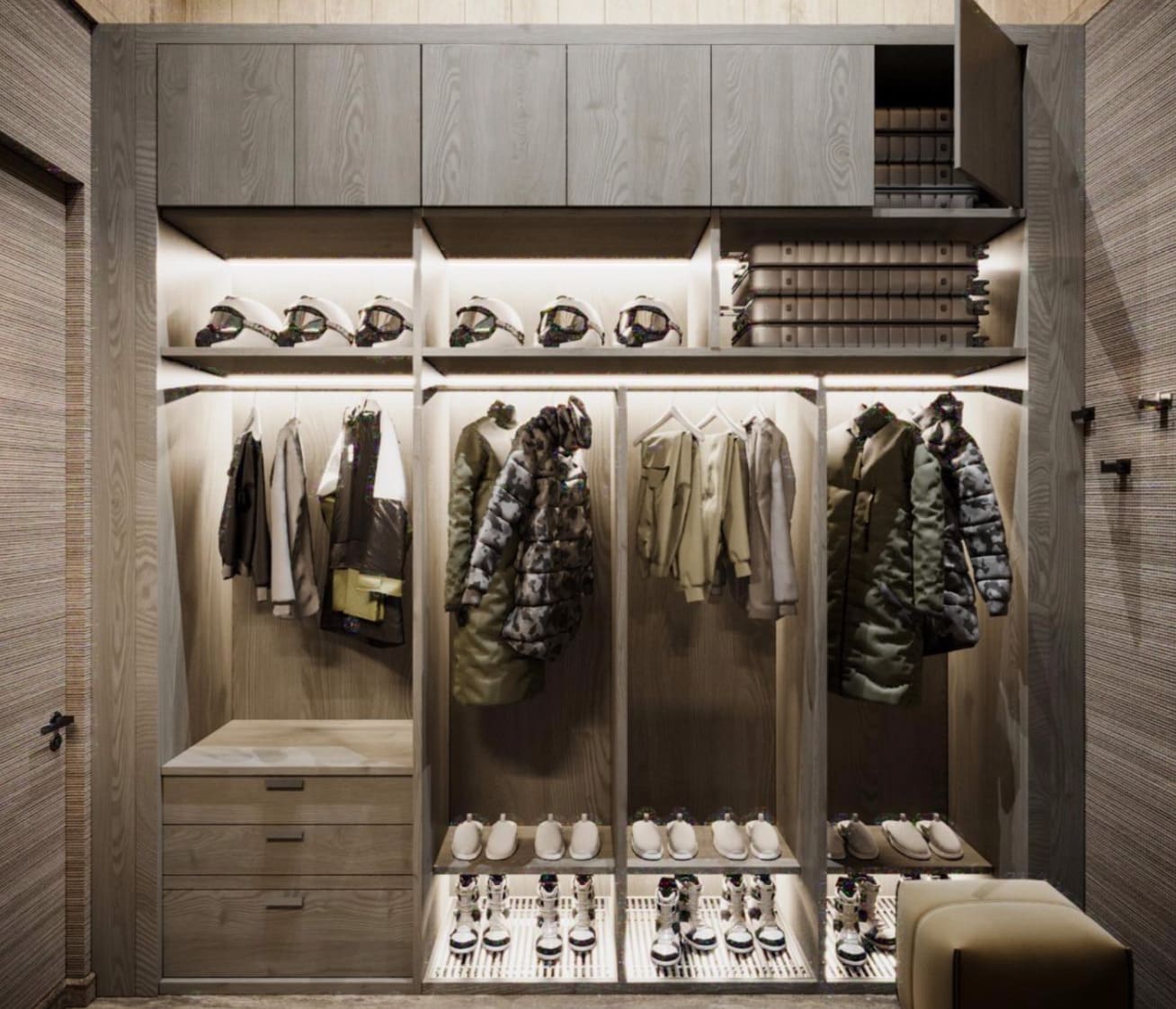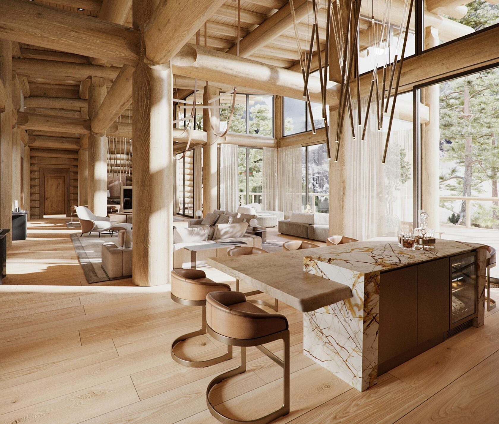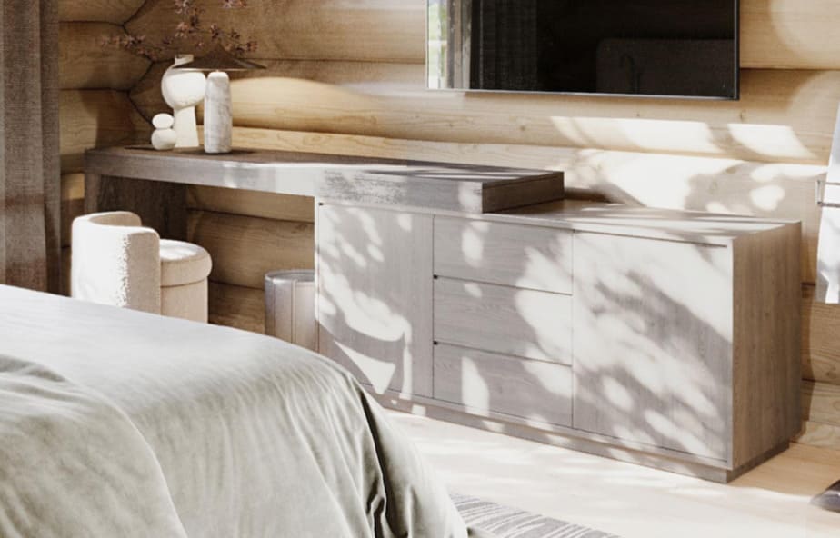 Так как 70% отдельной мебели было привязано к премиальным итальянским брендам, мы предложили реализовать мебель на наших производствах в Италии и Португалии — чтобы сохранить единую стилистику. Решающим стал наш предыдущий проект с португальской фабрикой: заказчика впечатлили качество и точность исполнения. Мы взяли на себя мебель для семейных и императорских вилл, бань — отделка от чертежей и монтажа до поставки ковров и координации с другими подрядчиками.