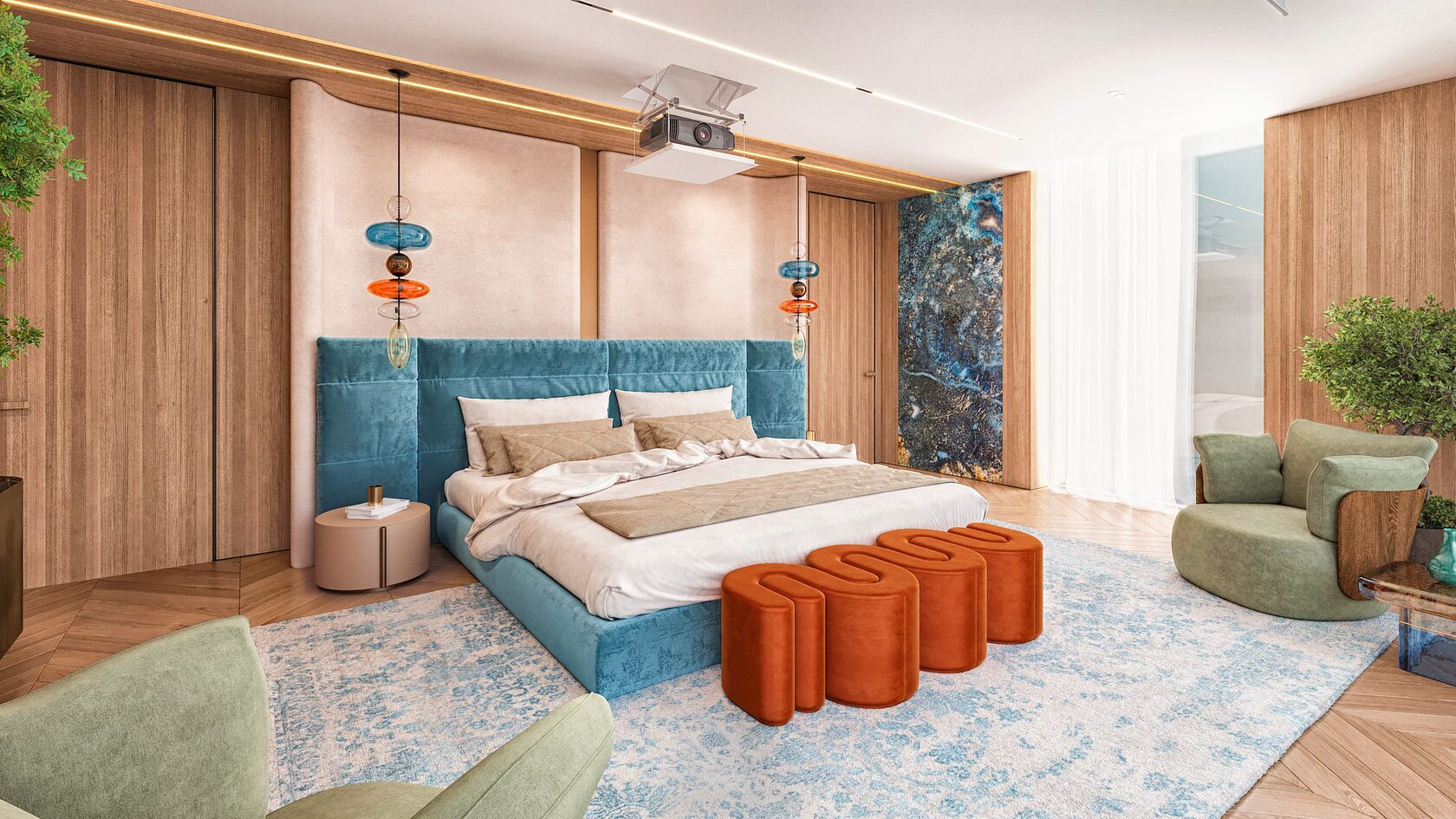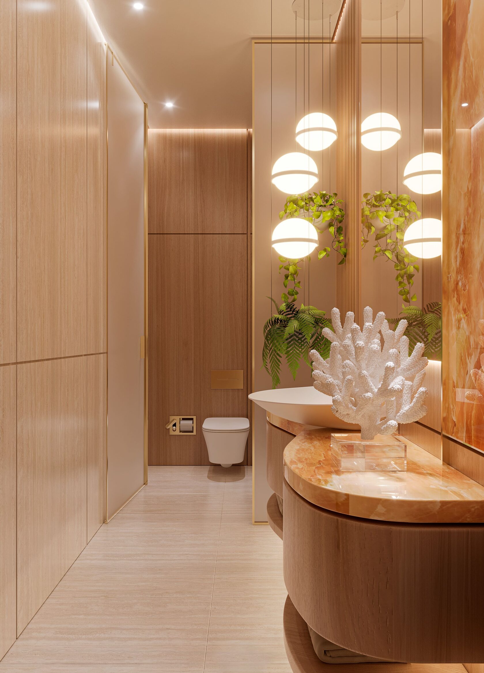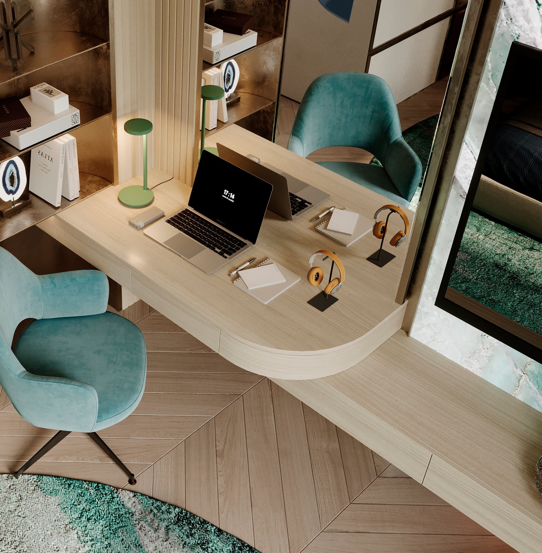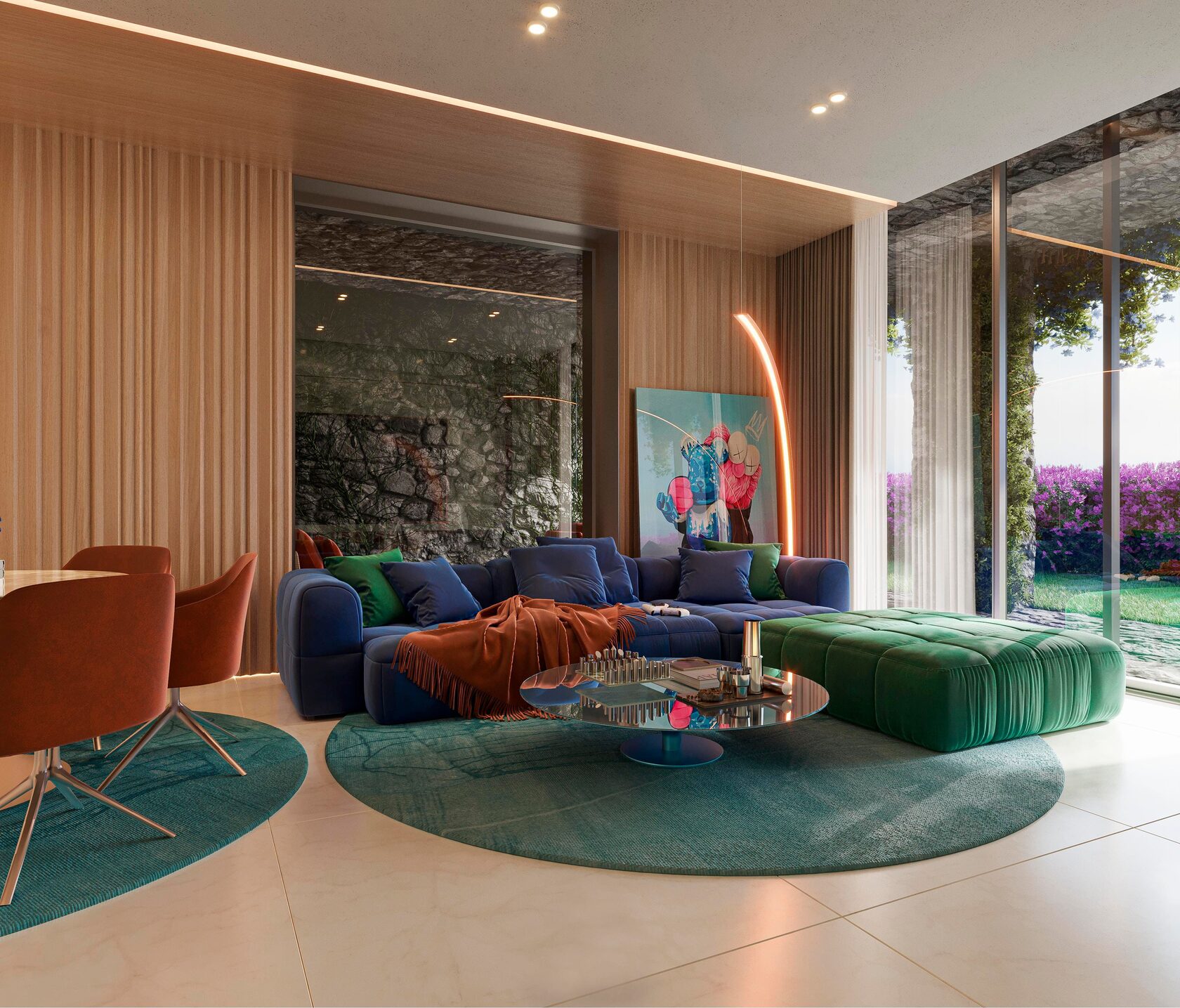 Мы разработали концепцию, в которой природные оттенки гармонируют с насыщенными акцентами, — а экологичные материалы стали основой всей отделки и мебели. Мы взяли на себя авторский надзор и полную комплектацию, включая текстиль, ковры и декор. Свет будет реализован на итальянских фабриках, мебель — по нашим авторским эскизам, созданным совместно с португальскими производствами.