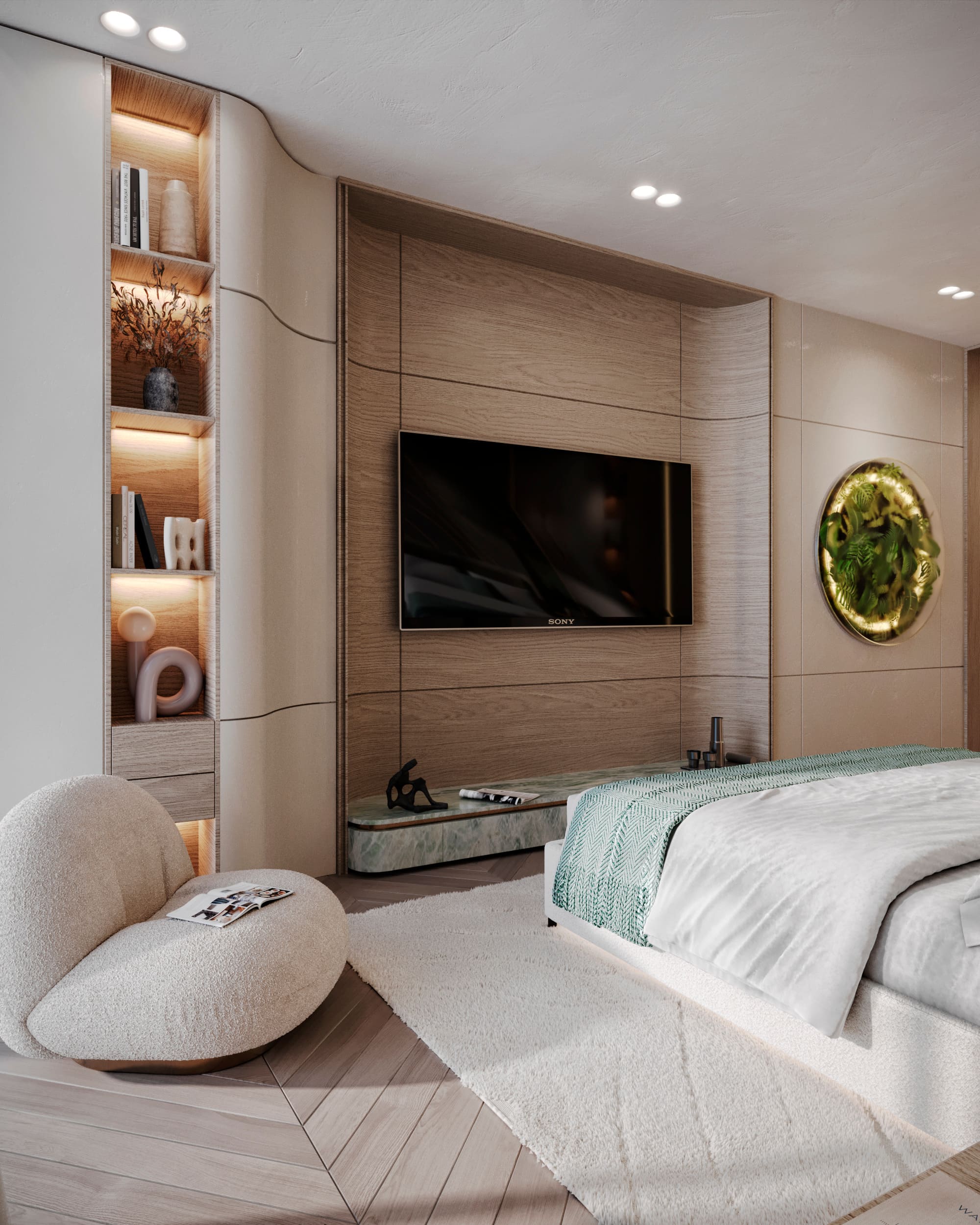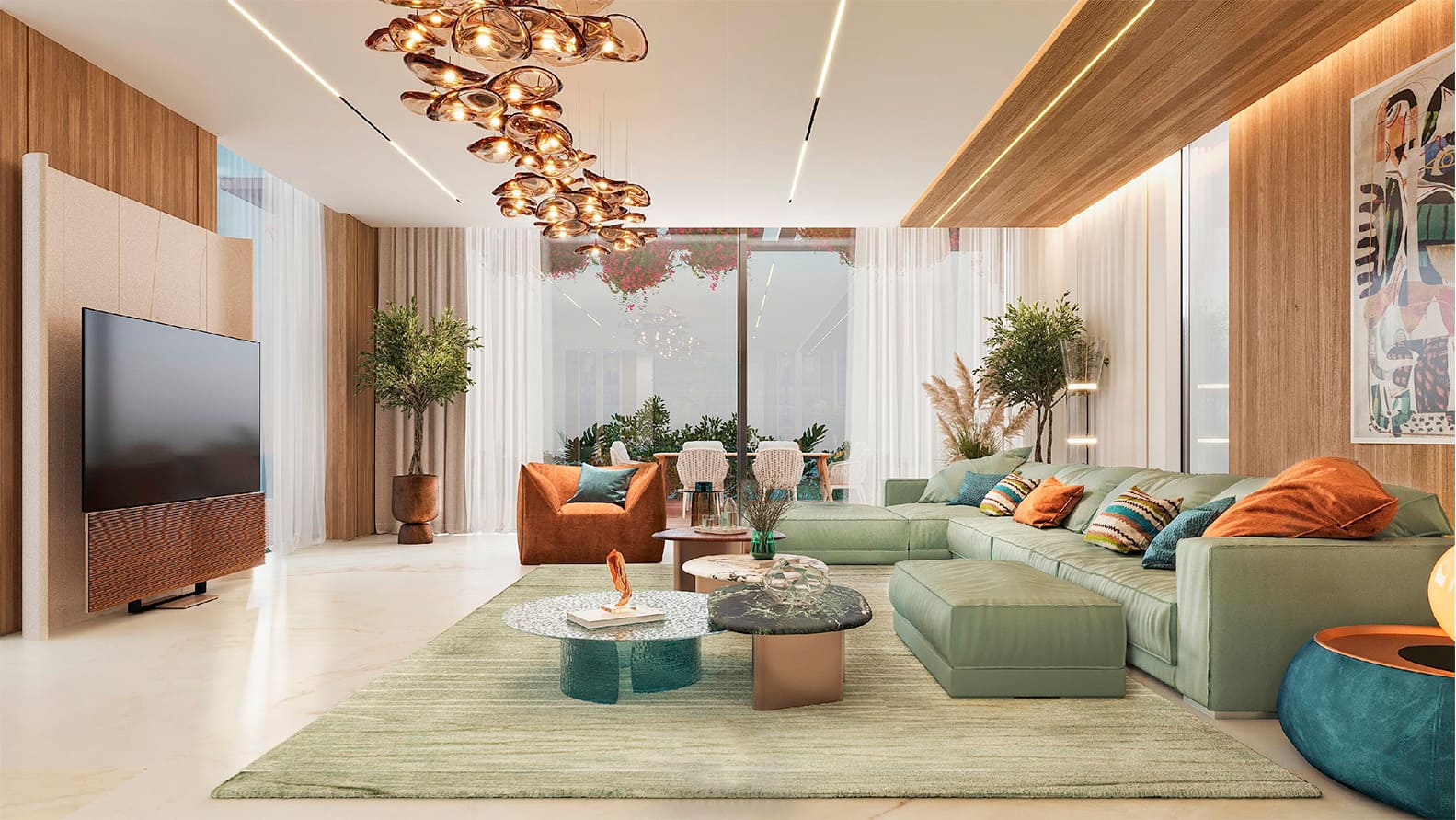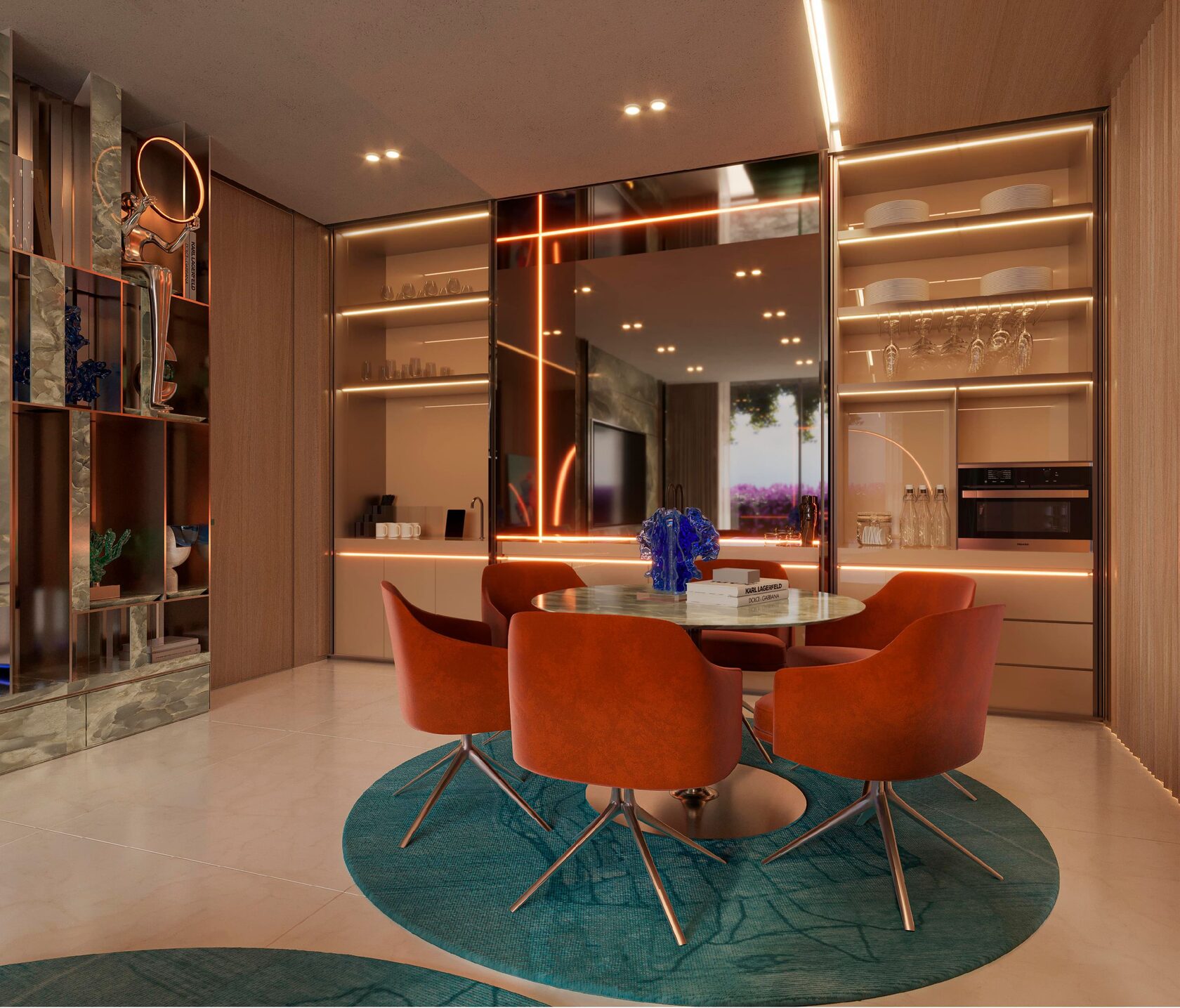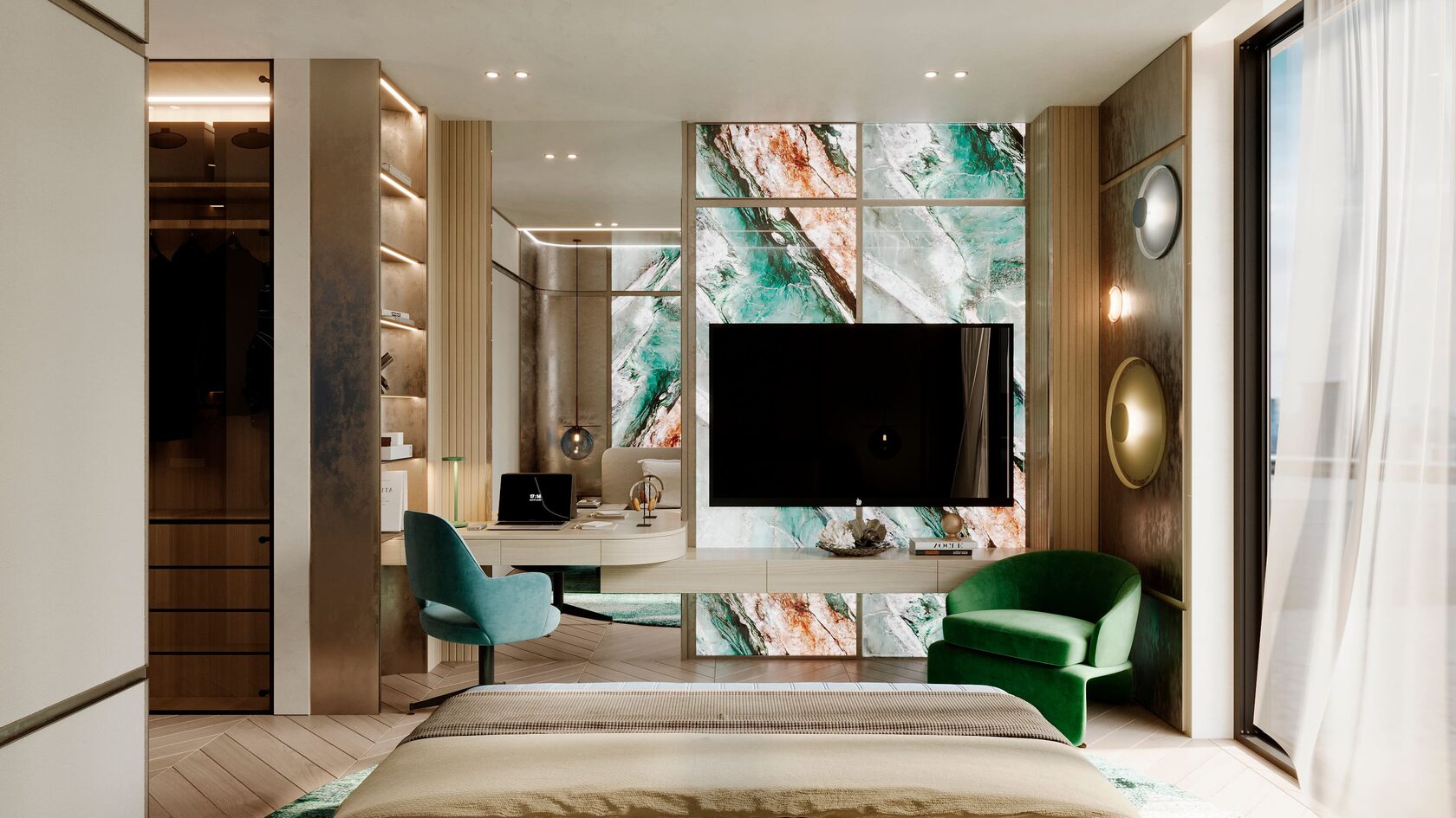 Мы разработали концепцию, в которой природные оттенки гармонируют с насыщенными акцентами, — а экологичные материалы стали основой всей отделки и мебели. Мы взяли на себя авторский надзор и полную комплектацию, включая текстиль, ковры и декор. Свет будет реализован на итальянских фабриках, мебель — по нашим авторским эскизам, созданным совместно с португальскими производствами.