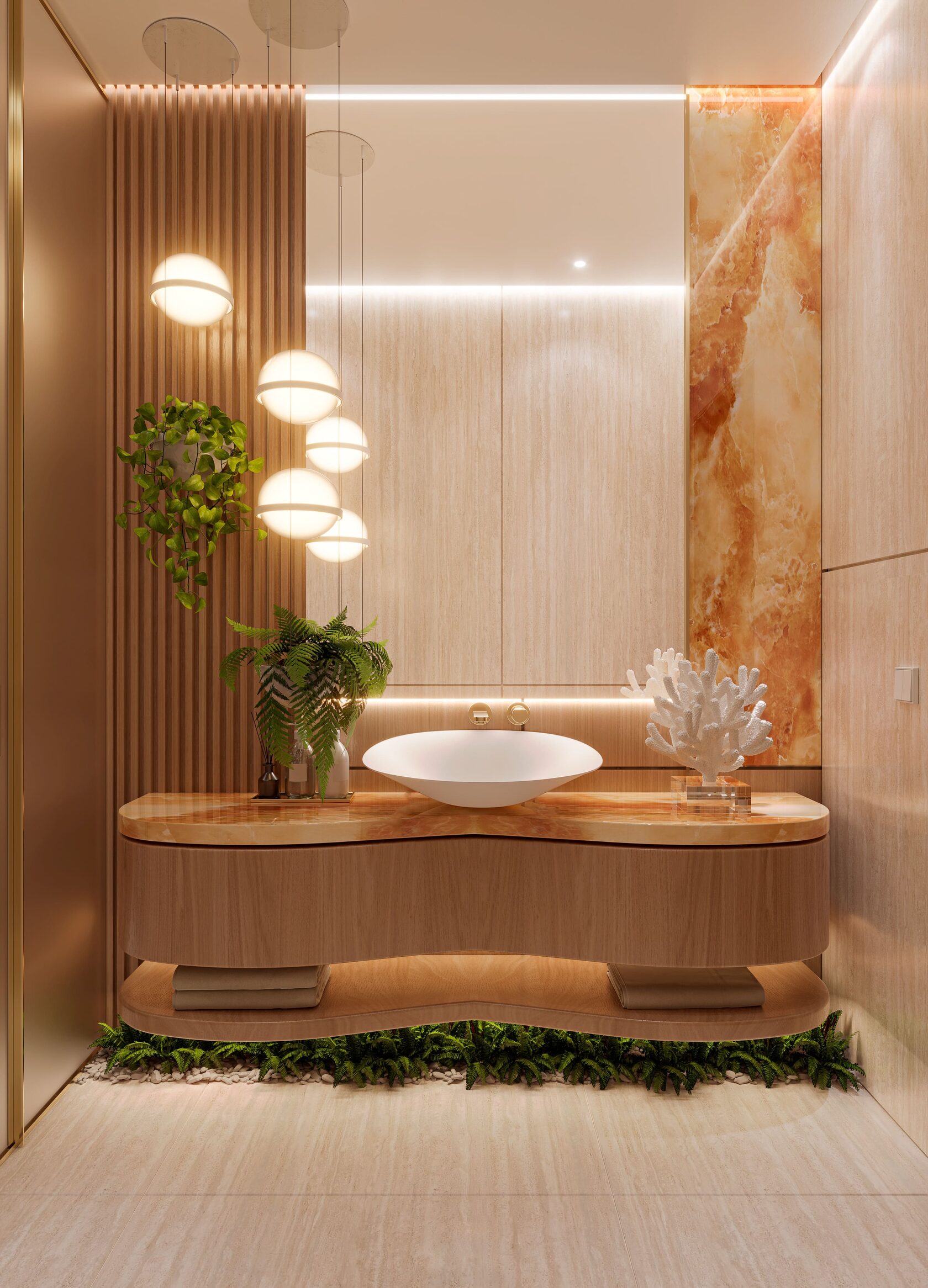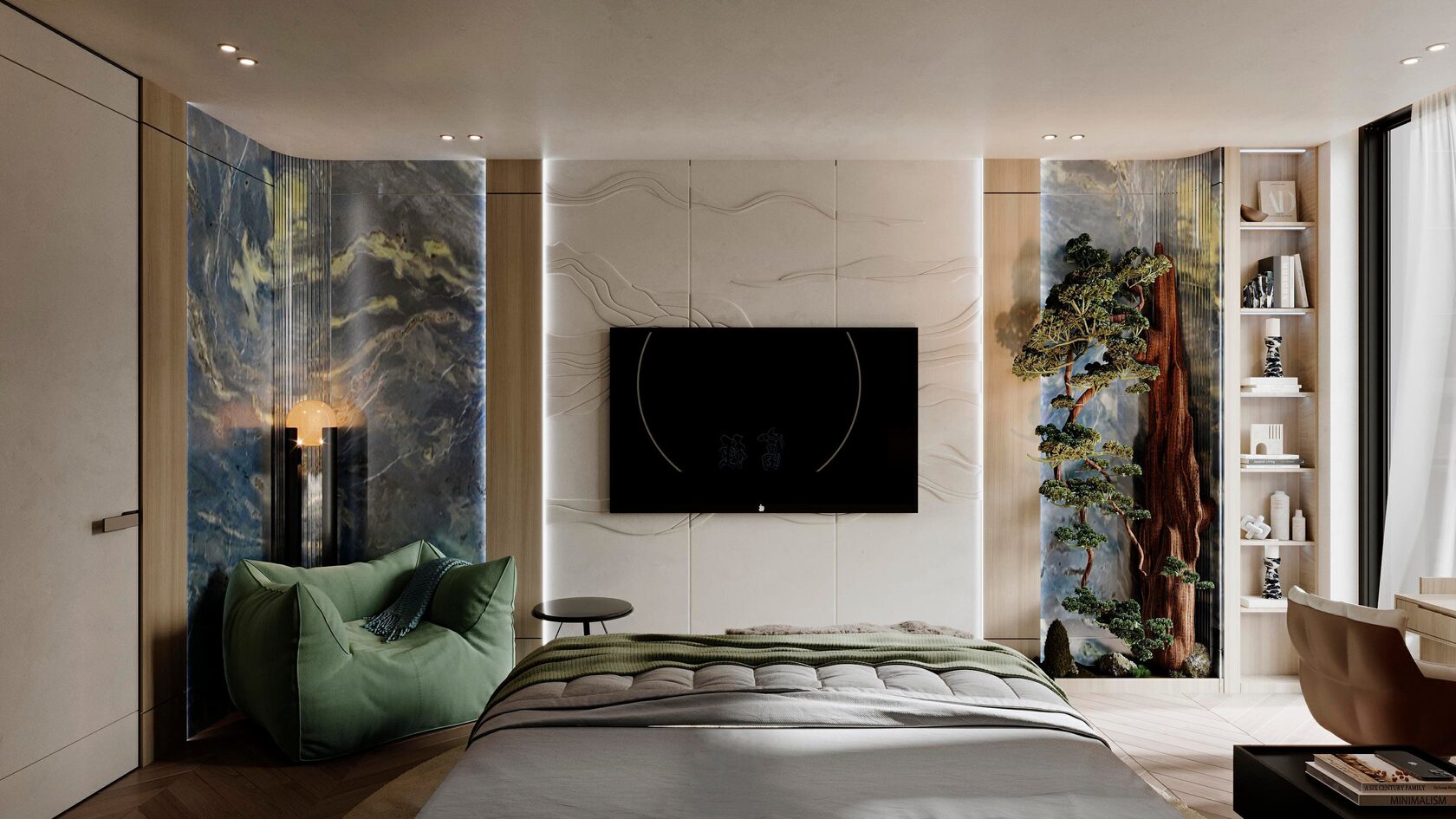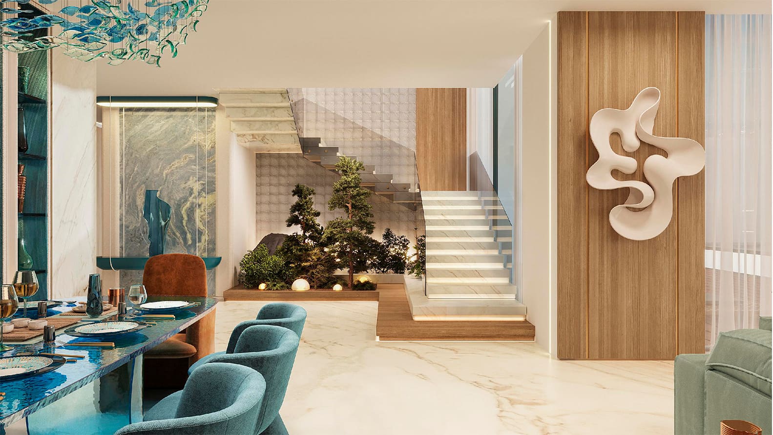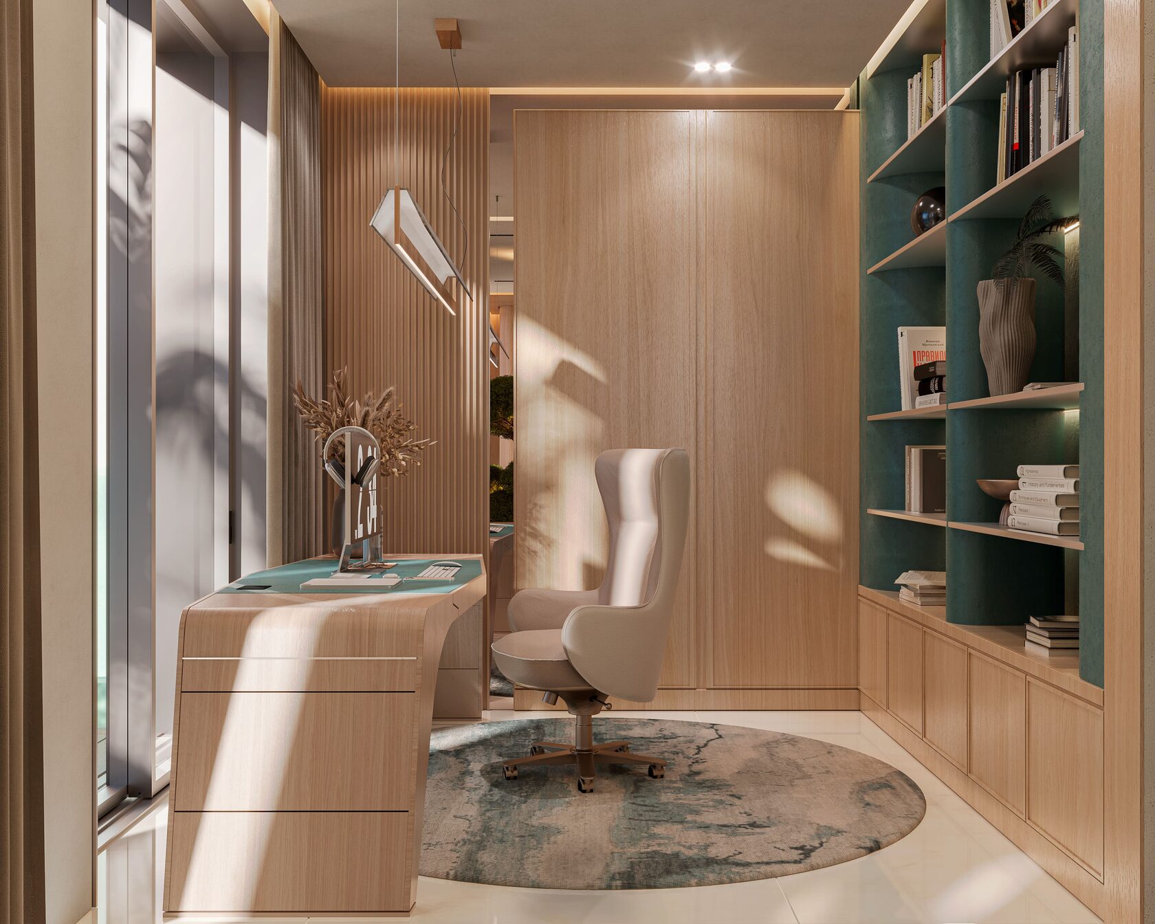 Мы разработали концепцию, в которой природные оттенки гармонируют с насыщенными акцентами, — а экологичные материалы стали основой всей отделки и мебели. Мы взяли на себя авторский надзор и полную комплектацию, включая текстиль, ковры и декор. Свет будет реализован на итальянских фабриках, мебель — по нашим авторским эскизам, созданным совместно с португальскими производствами.