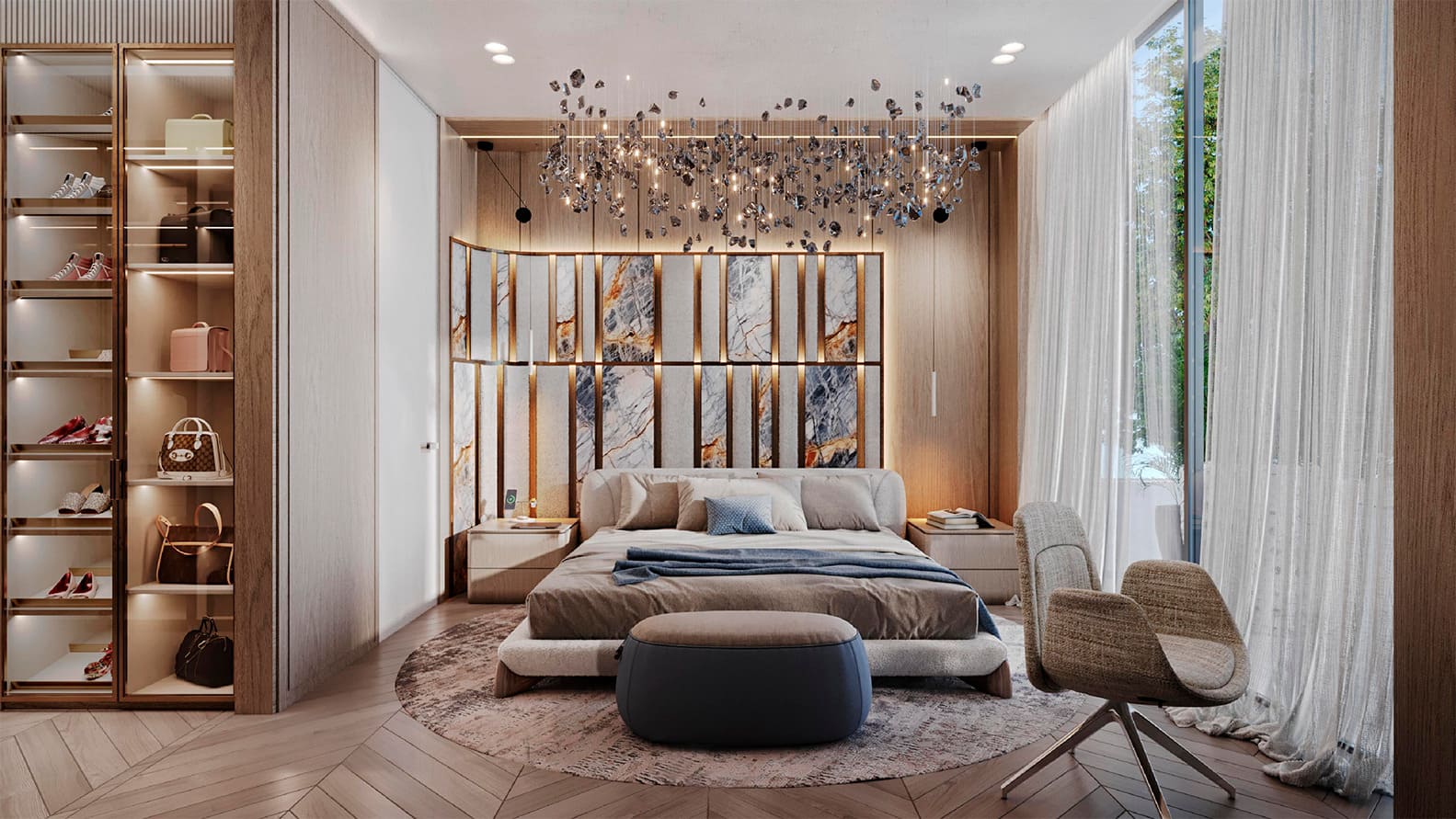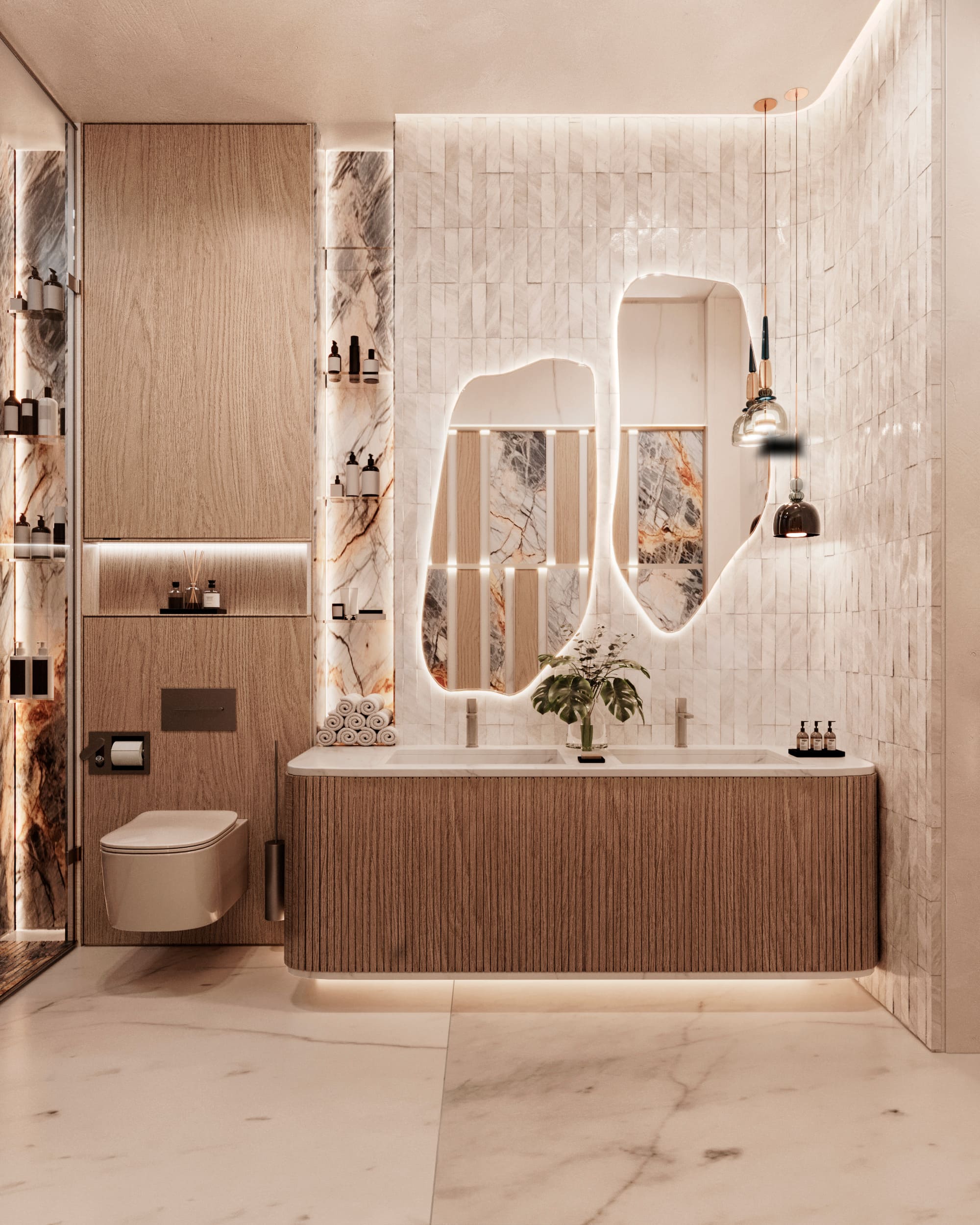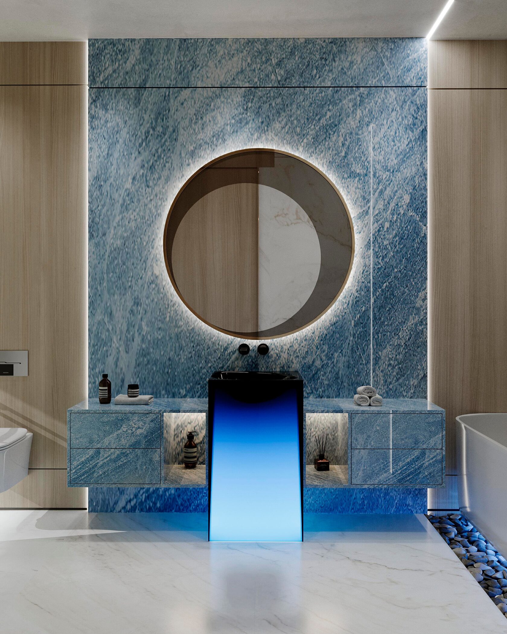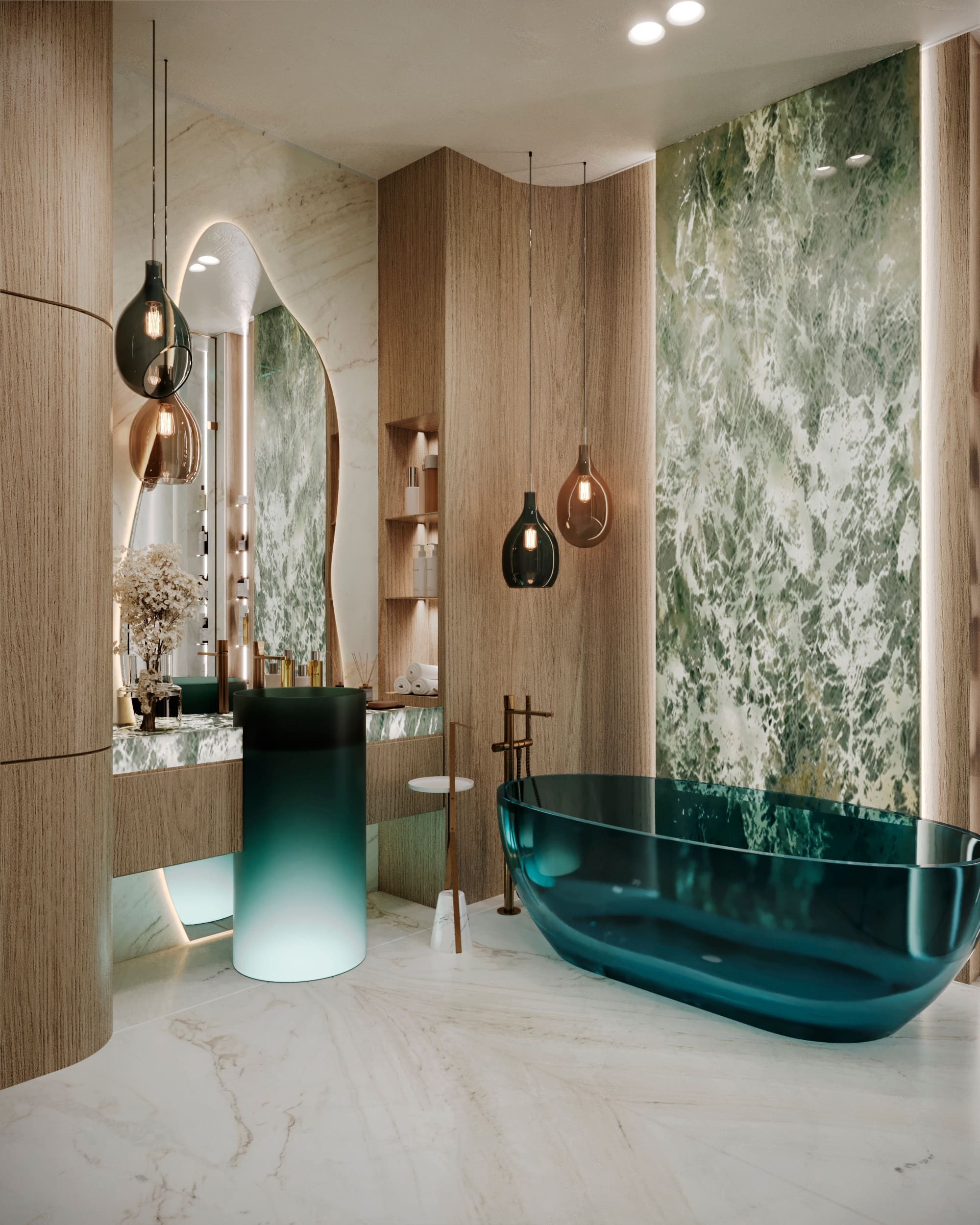 Мы разработали концепцию, в которой природные оттенки гармонируют с насыщенными акцентами, — а экологичные материалы стали основой всей отделки и мебели. Мы взяли на себя авторский надзор и полную комплектацию, включая текстиль, ковры и декор. Свет будет реализован на итальянских фабриках, мебель — по нашим авторским эскизам, созданным совместно с португальскими производствами.
