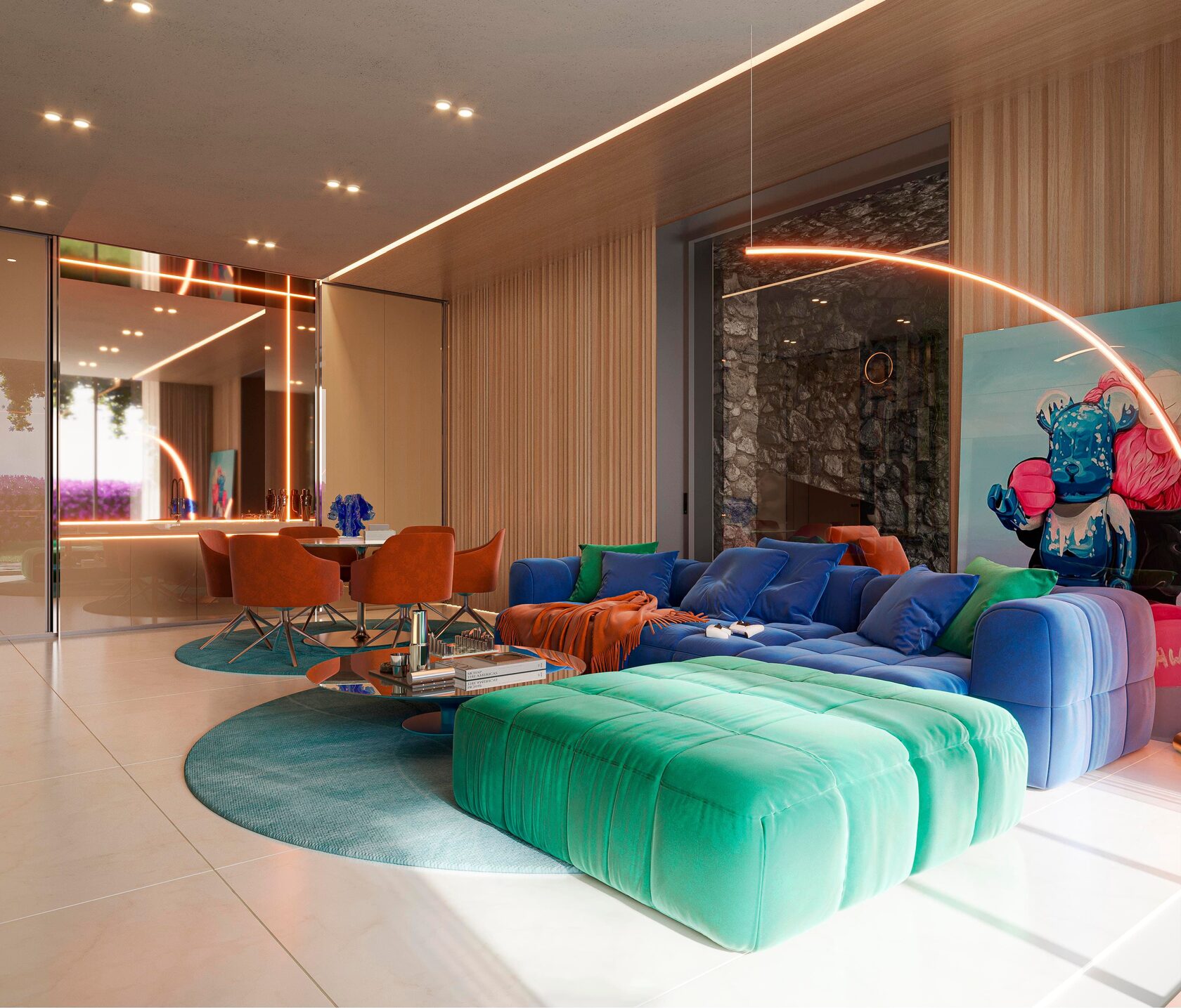 Клиент, с которым мы уже реализовали несколько проектов под ключ, обратился вновь — на этот раз с объектом в Бодруме, Турция. После серии интерьеров в спокойных, тёплых тонах он захотел перемен: яркости, красок и свежих визуальных впечатлений, но без потери уюта и связи с природой.