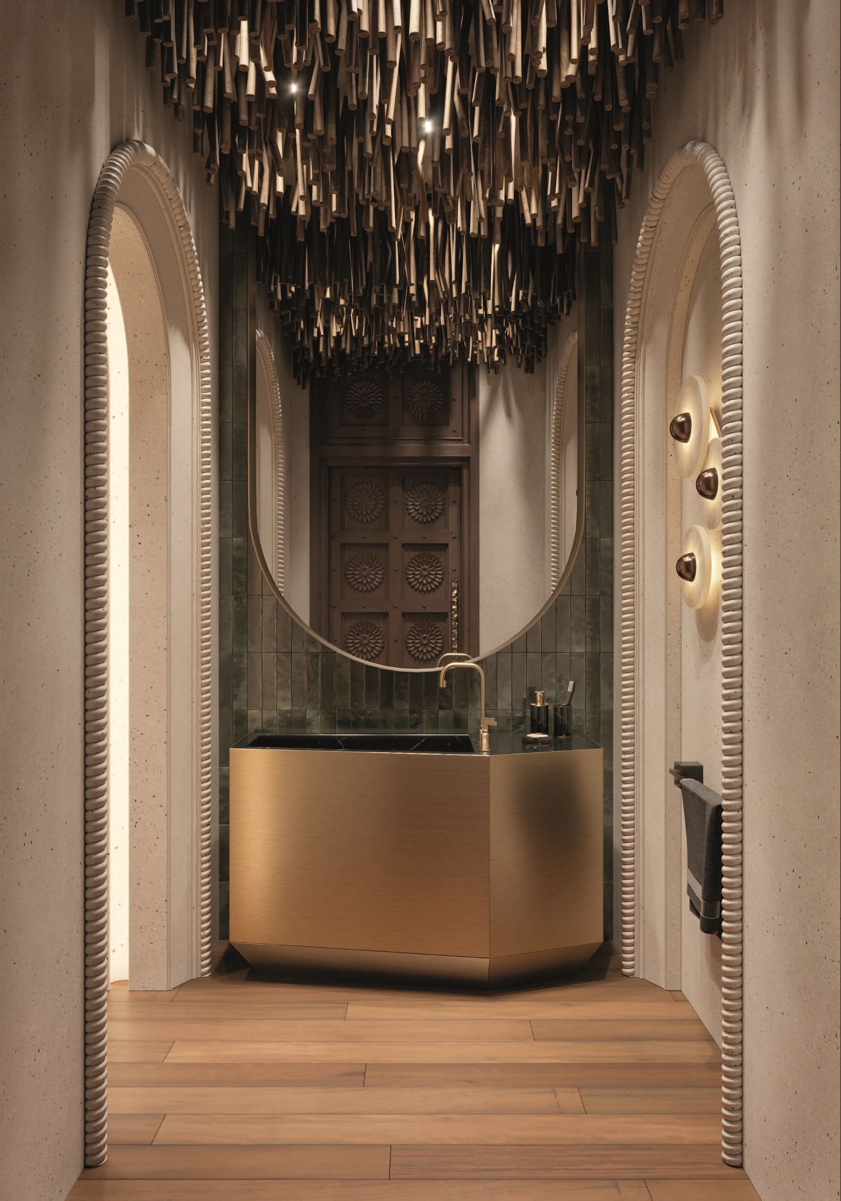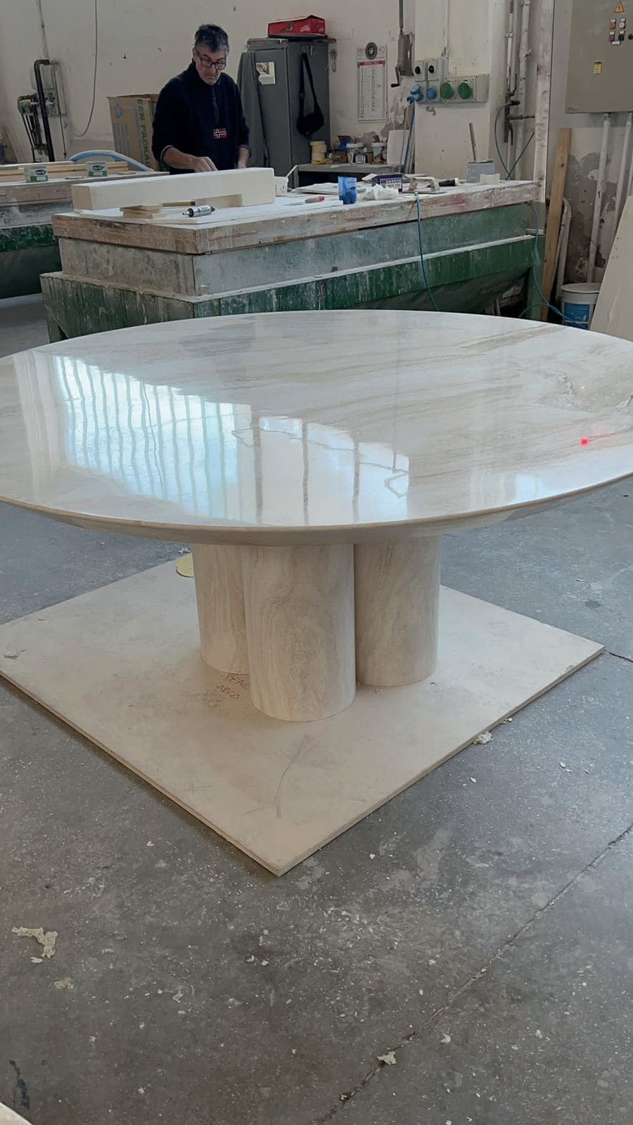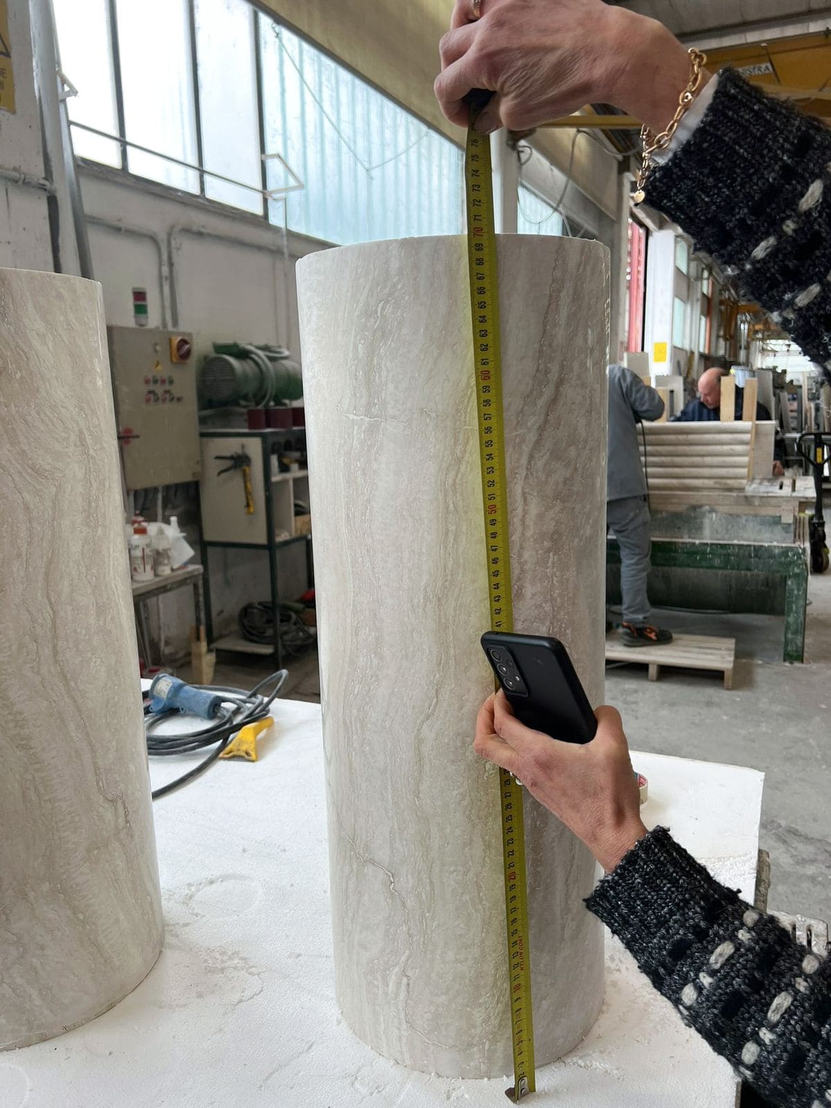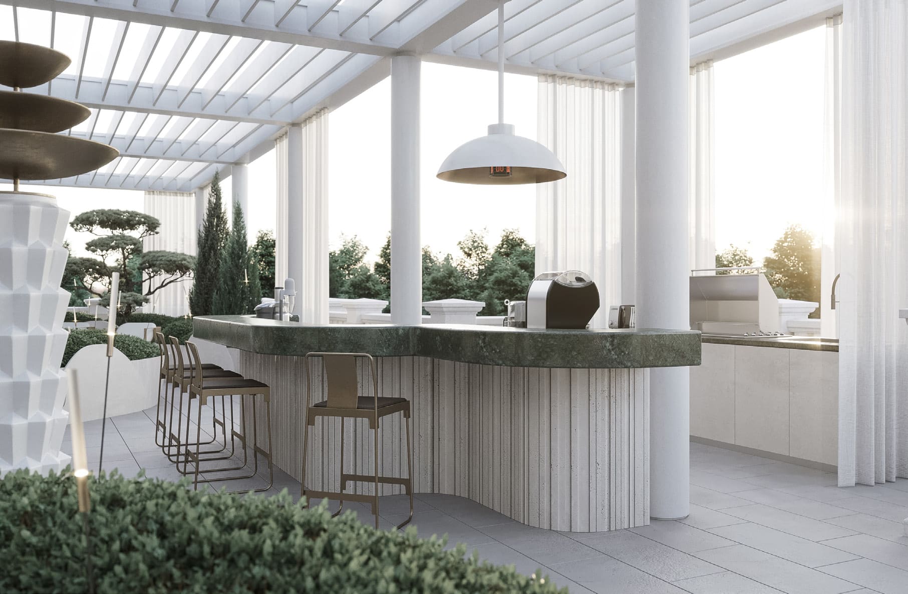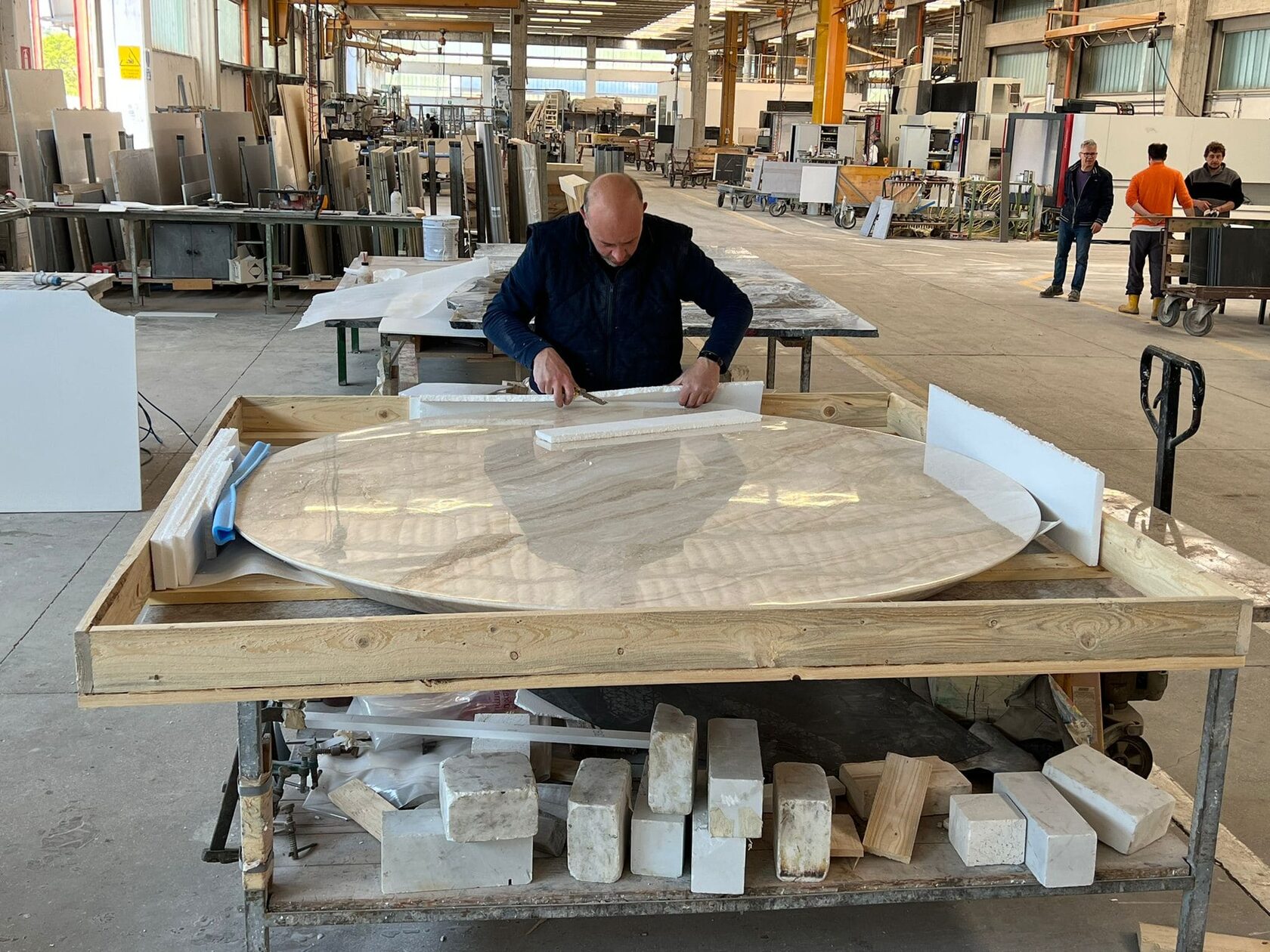 Особое внимание уделяем свету: дизайнерские светильники и интегрированное освещение создаются в тесной связи с архитектурным решением пространства. Также в Италии сосредоточено наше производство по обработке натурального камня — от столешниц до сложных архитектурных элементов.