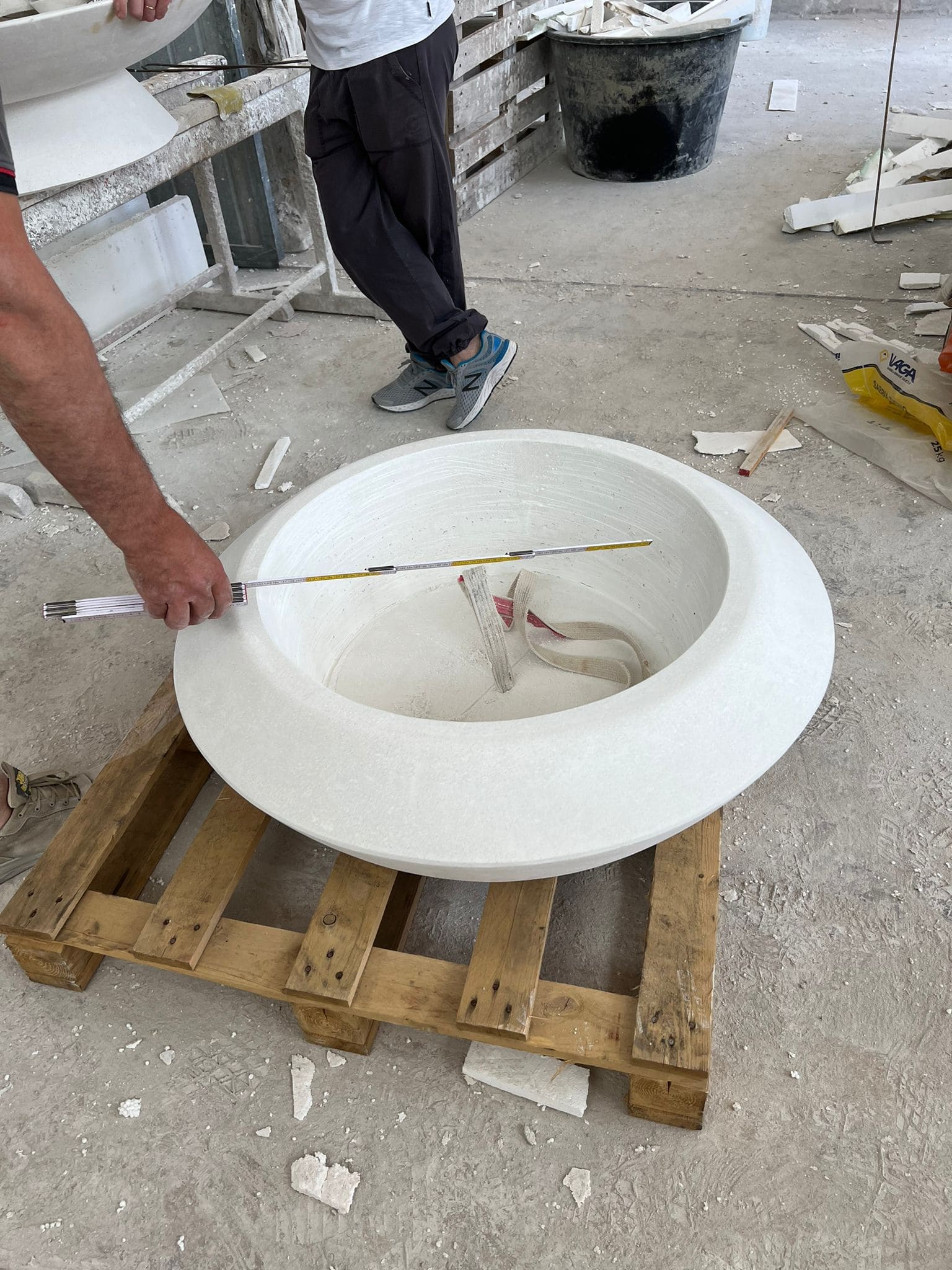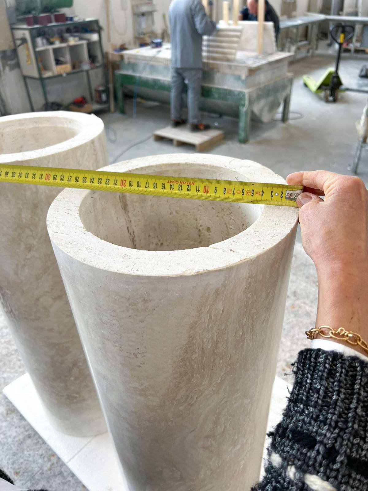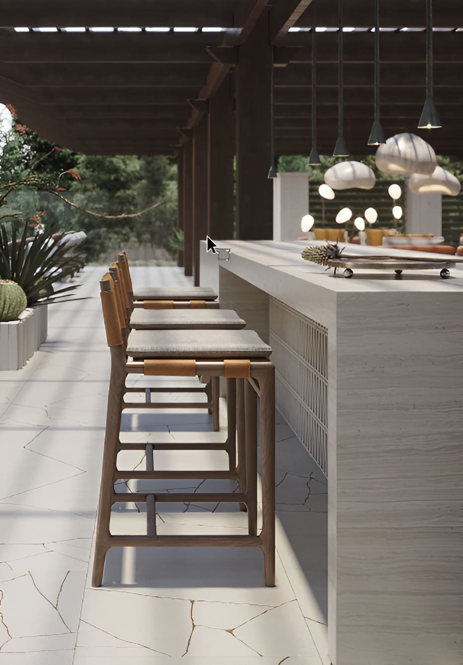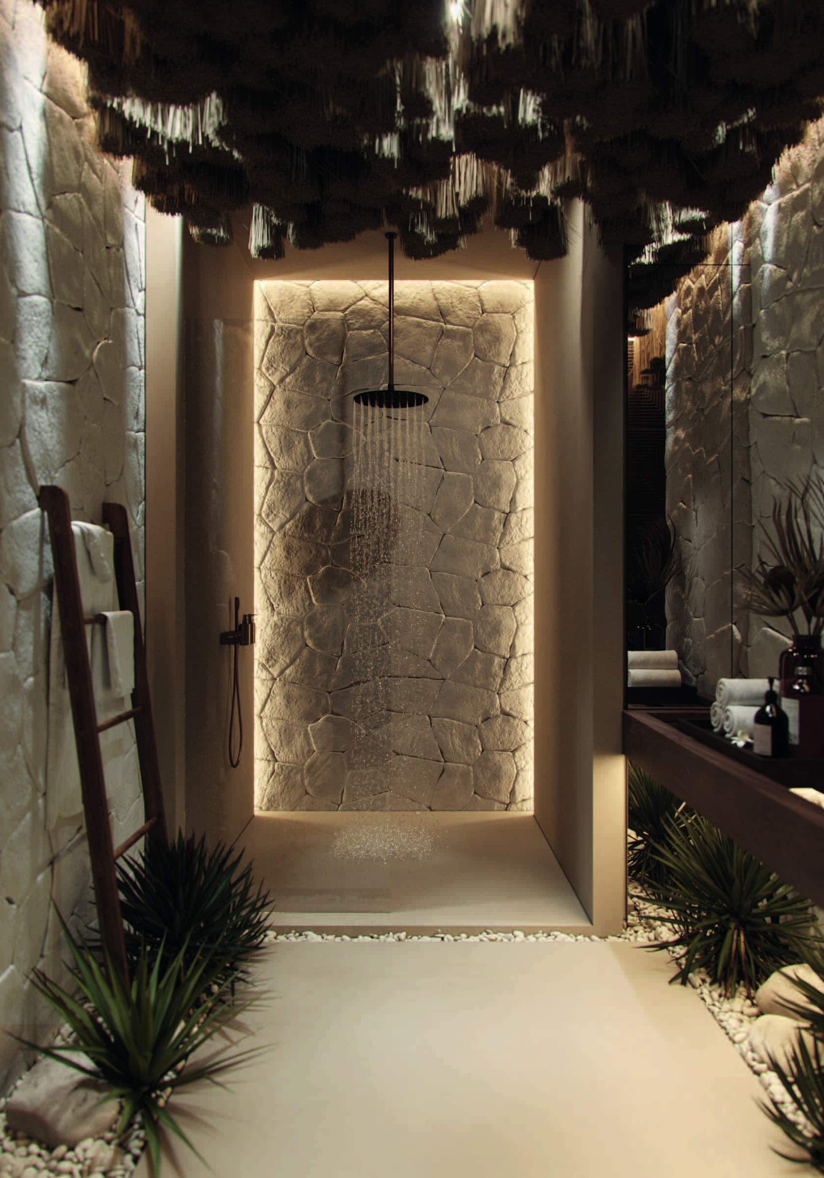 Особое внимание уделяем свету: дизайнерские светильники и интегрированное освещение создаются в тесной связи с архитектурным решением пространства. Также в Италии сосредоточено наше производство по обработке натурального камня — от столешниц до сложных архитектурных элементов.