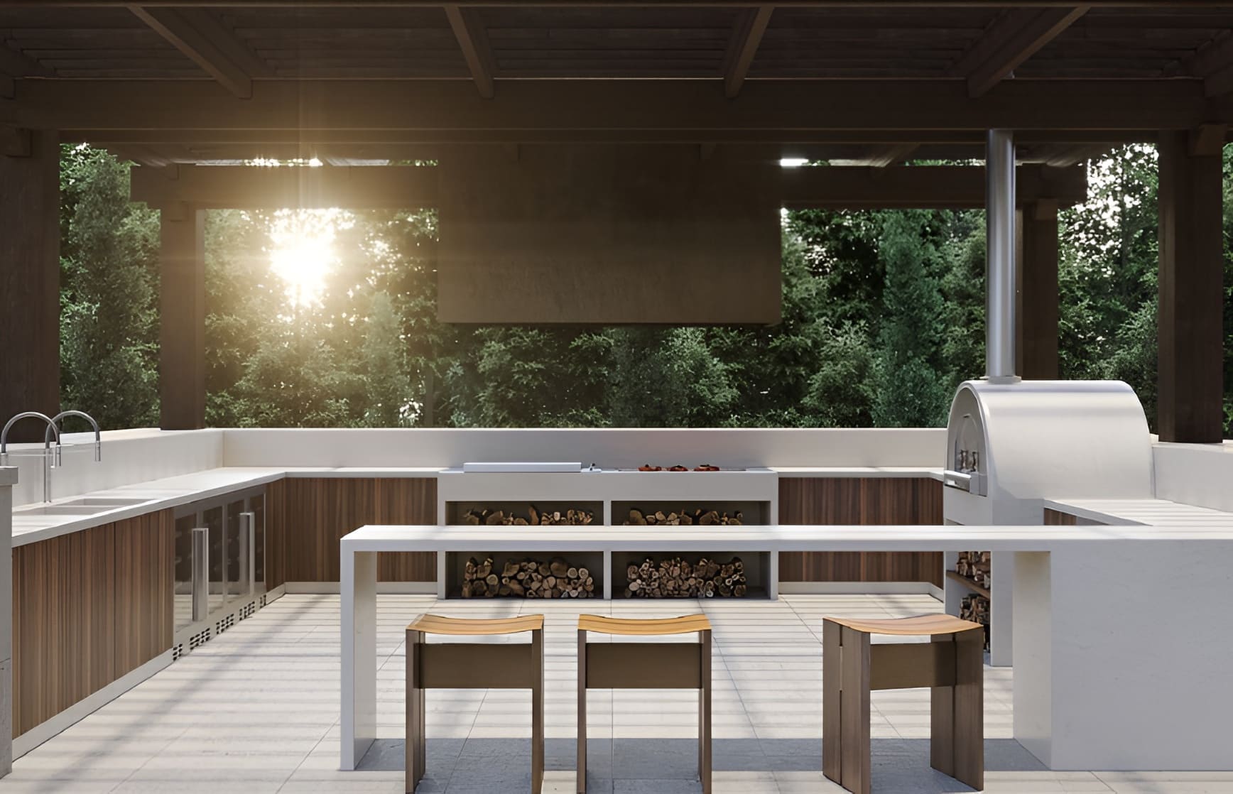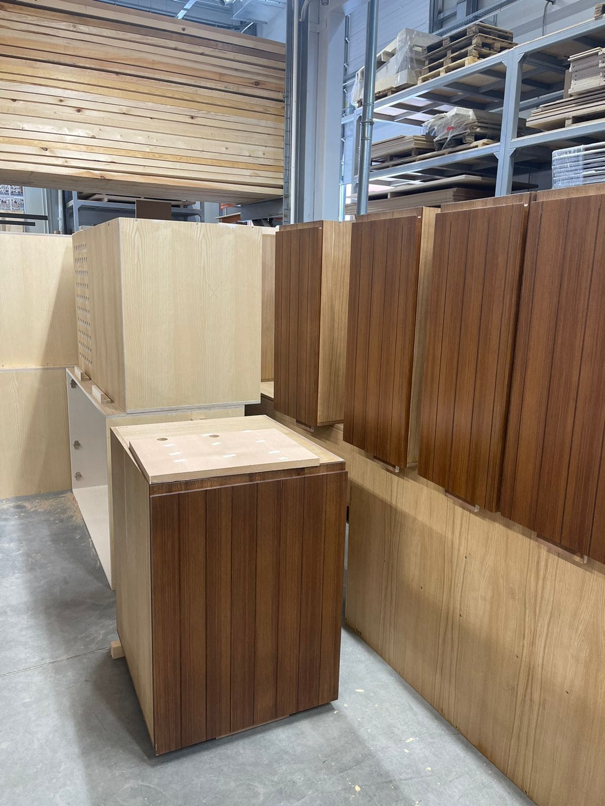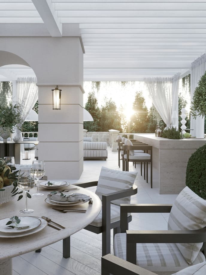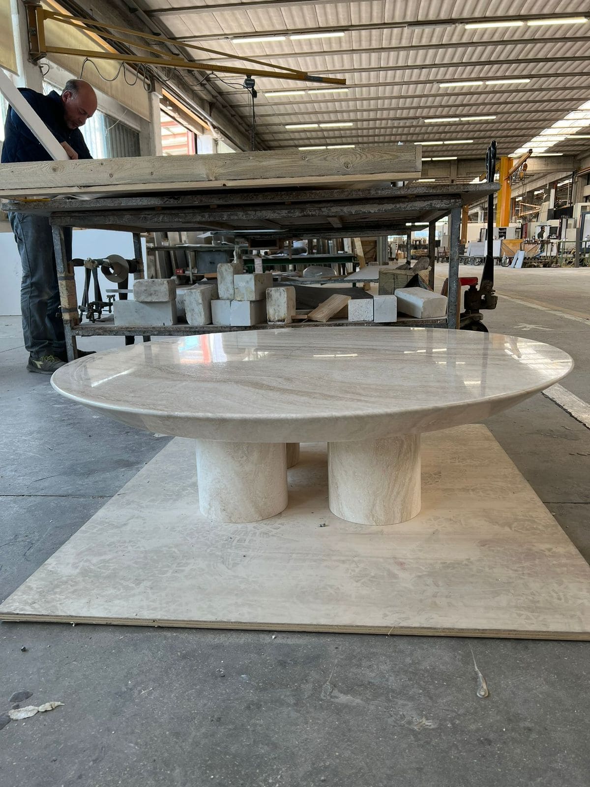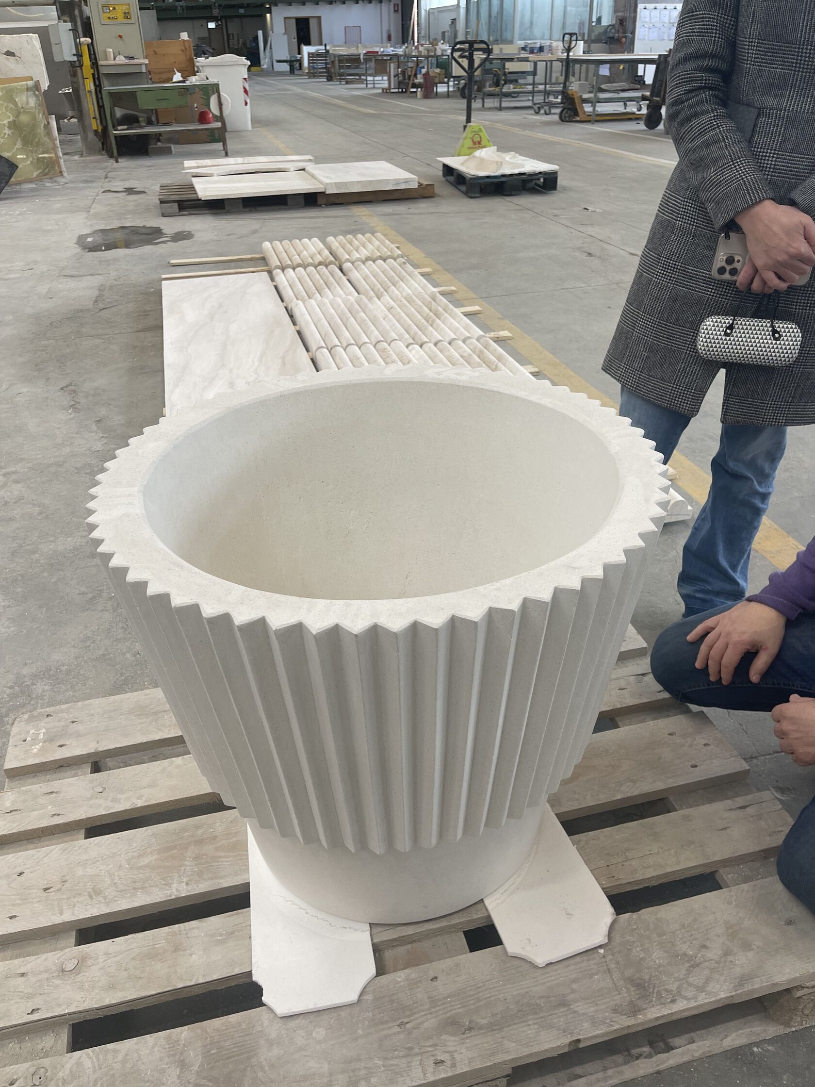 Особое внимание уделяем свету: дизайнерские светильники и интегрированное освещение создаются в тесной связи с архитектурным решением пространства. Также в Италии сосредоточено наше производство по обработке натурального камня — от столешниц до сложных архитектурных элементов.