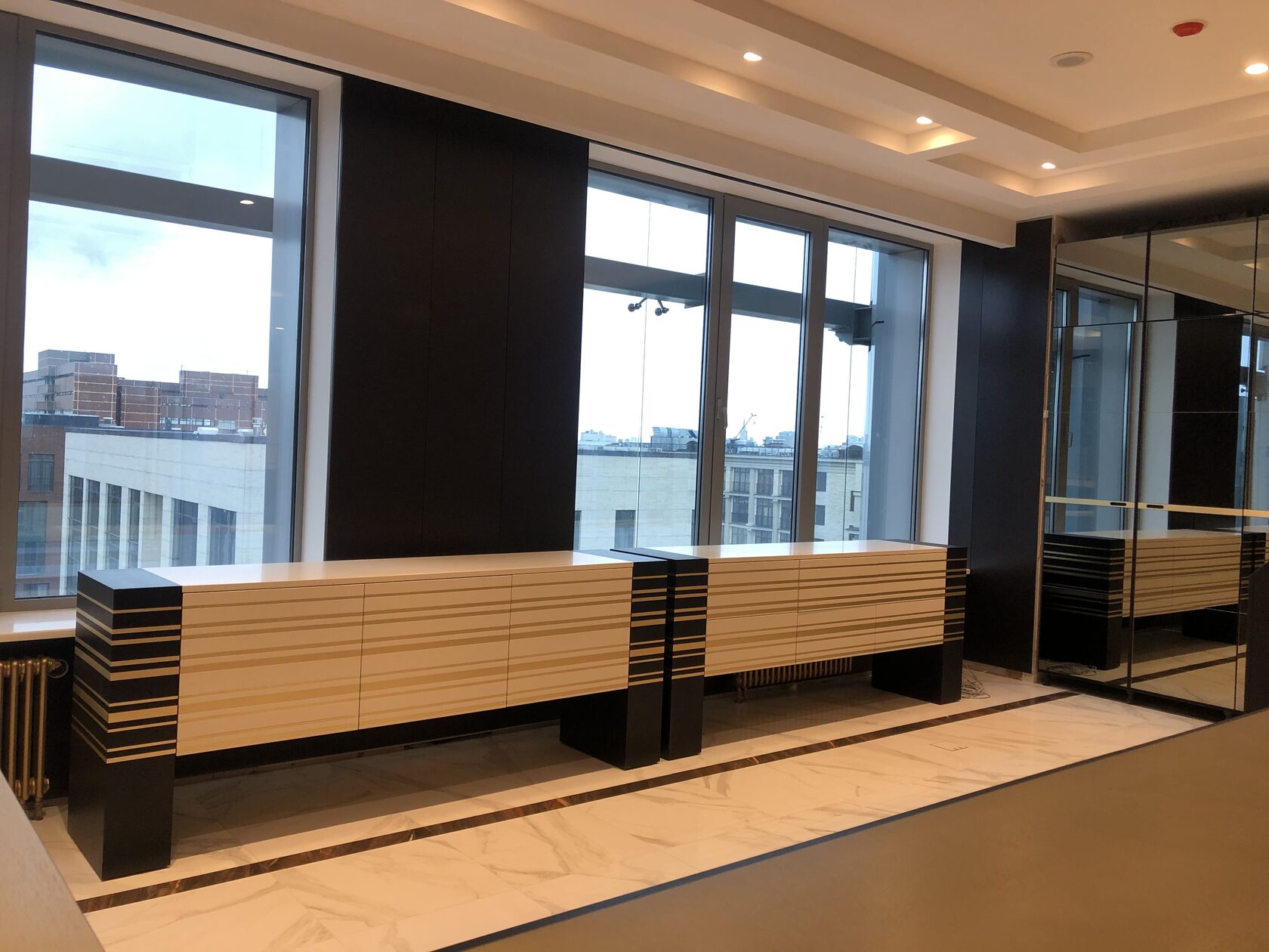 Вся встроенная мебель для проектов в России создаётся локально — с учётом климатических, технических и эксплуатационных особенностей. Это не просто монтаж, а архитектурное решение: системы хранения, ниши, перегородки становятся органичной частью интерьера. Особое место занимает резьба по дереву — ручная работа, сочетающая традиции русского умельчества с современным дизайном.
